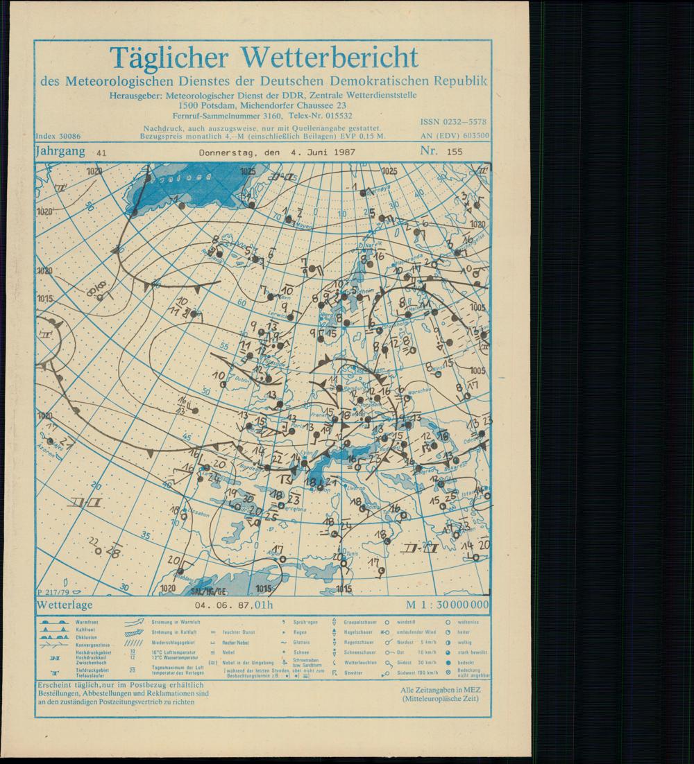 Täglicher Wetterbericht des Meteorologischen Dienstes der Deutschen Demokratischen...
