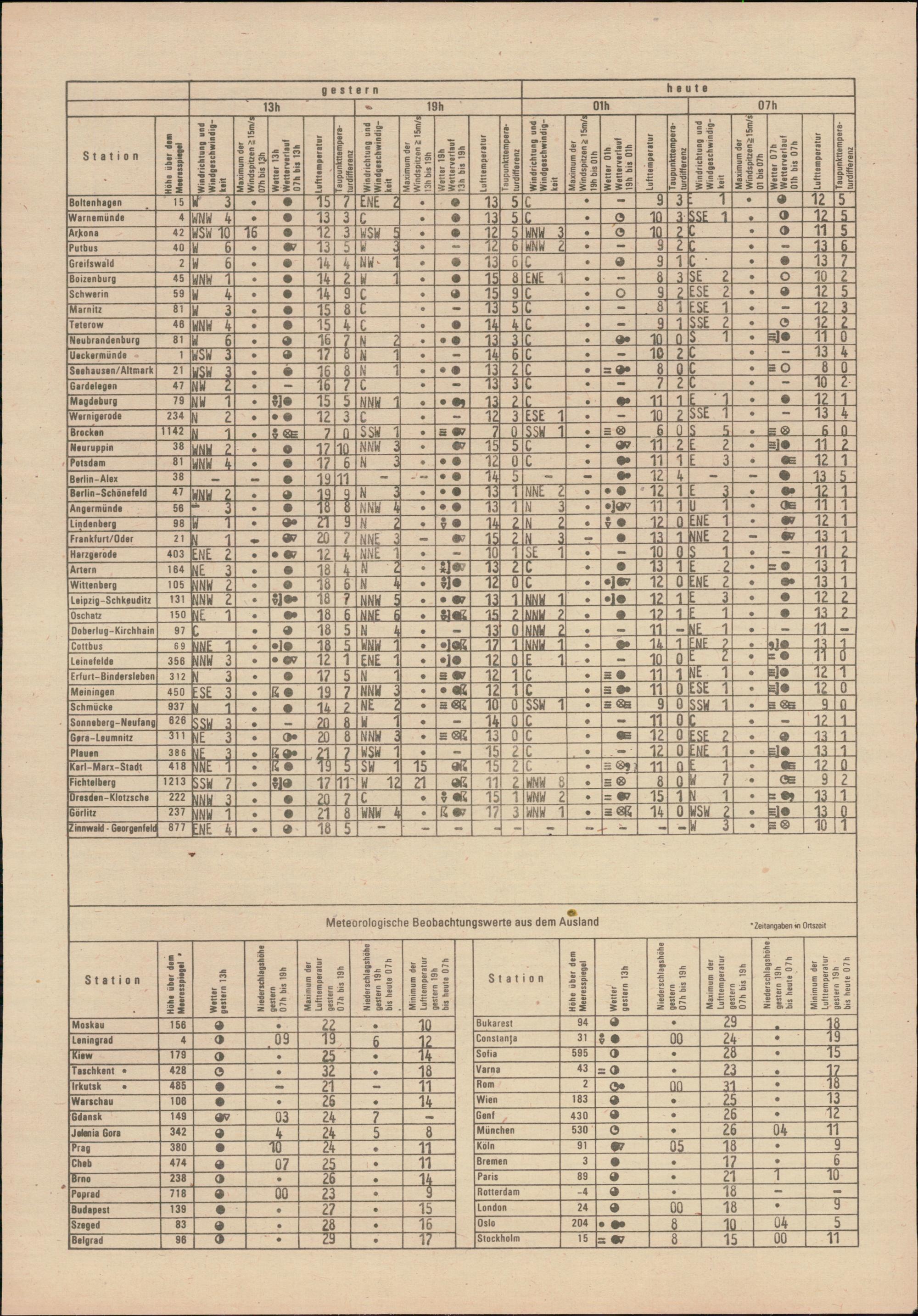 Täglicher Wetterbericht des Meteorologischen Dienstes der Deutschen Demokratischen...