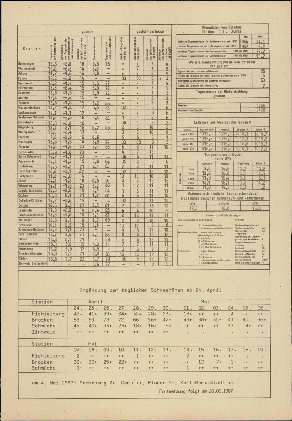 Täglicher Wetterbericht des Meteorologischen Dienstes der Deutschen Demokratischen...