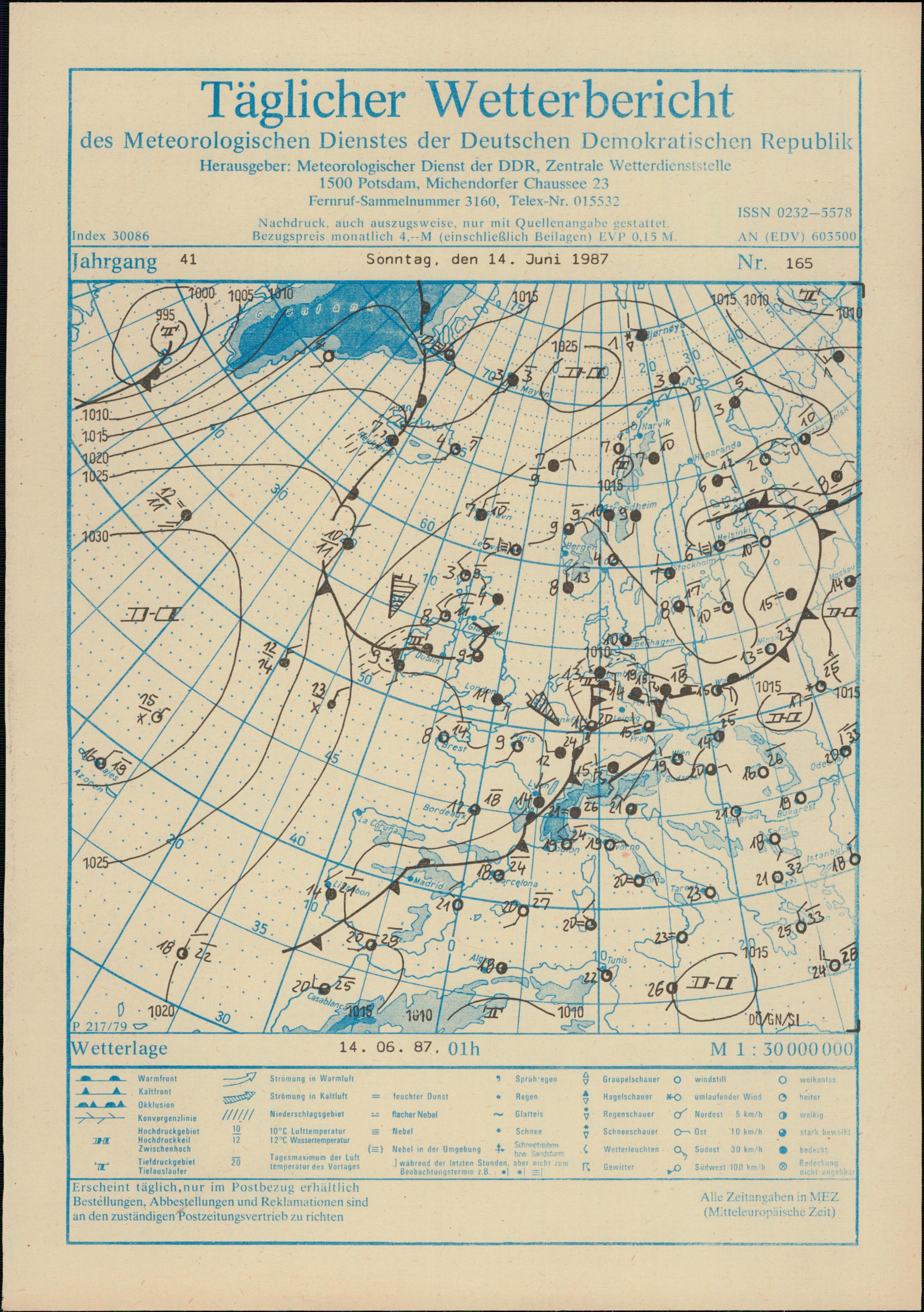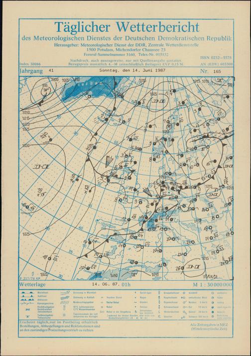 Täglicher Wetterbericht des Meteorologischen Dienstes der Deutschen Demokratischen...