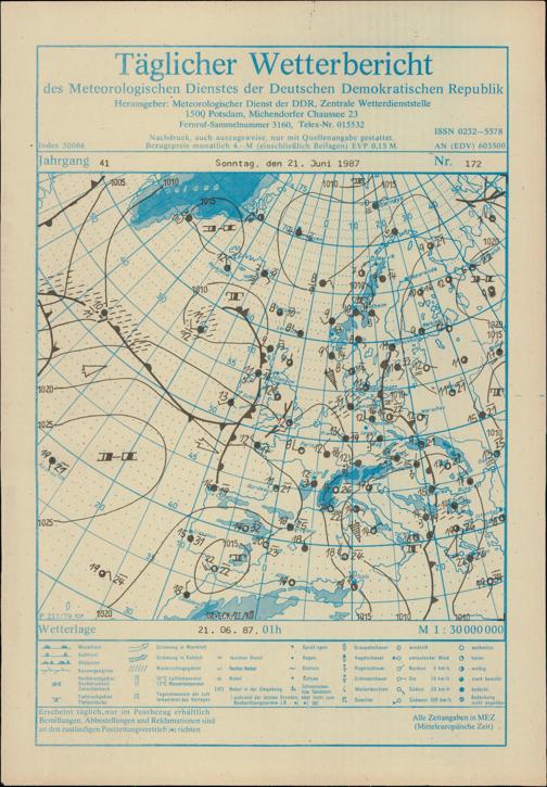 Täglicher Wetterbericht des Meteorologischen Dienstes der Deutschen Demokratischen...