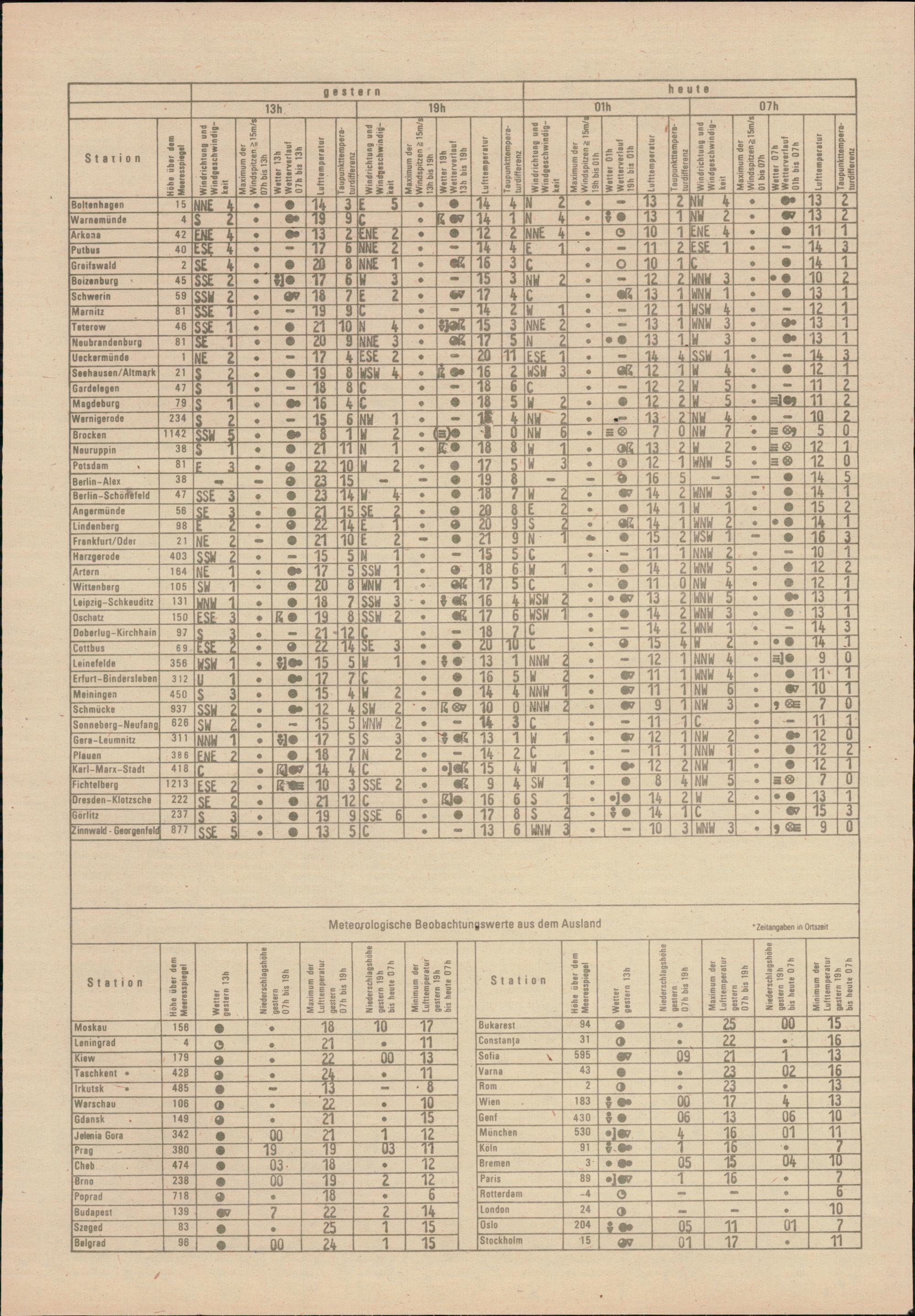 Täglicher Wetterbericht des Meteorologischen Dienstes der Deutschen Demokratischen...