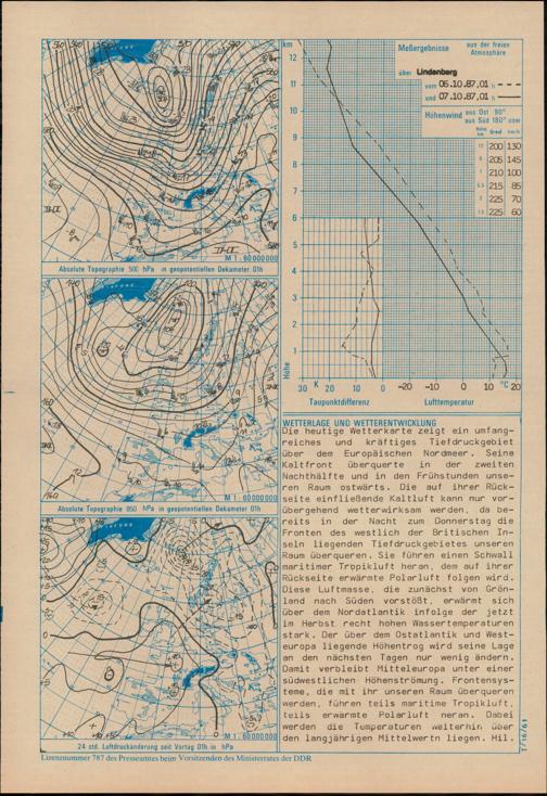 Täglicher Wetterbericht des Meteorologischen Dienstes der Deutschen Demokratischen...