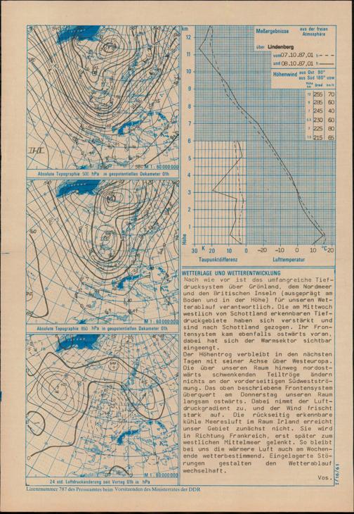 Täglicher Wetterbericht des Meteorologischen Dienstes der Deutschen Demokratischen...