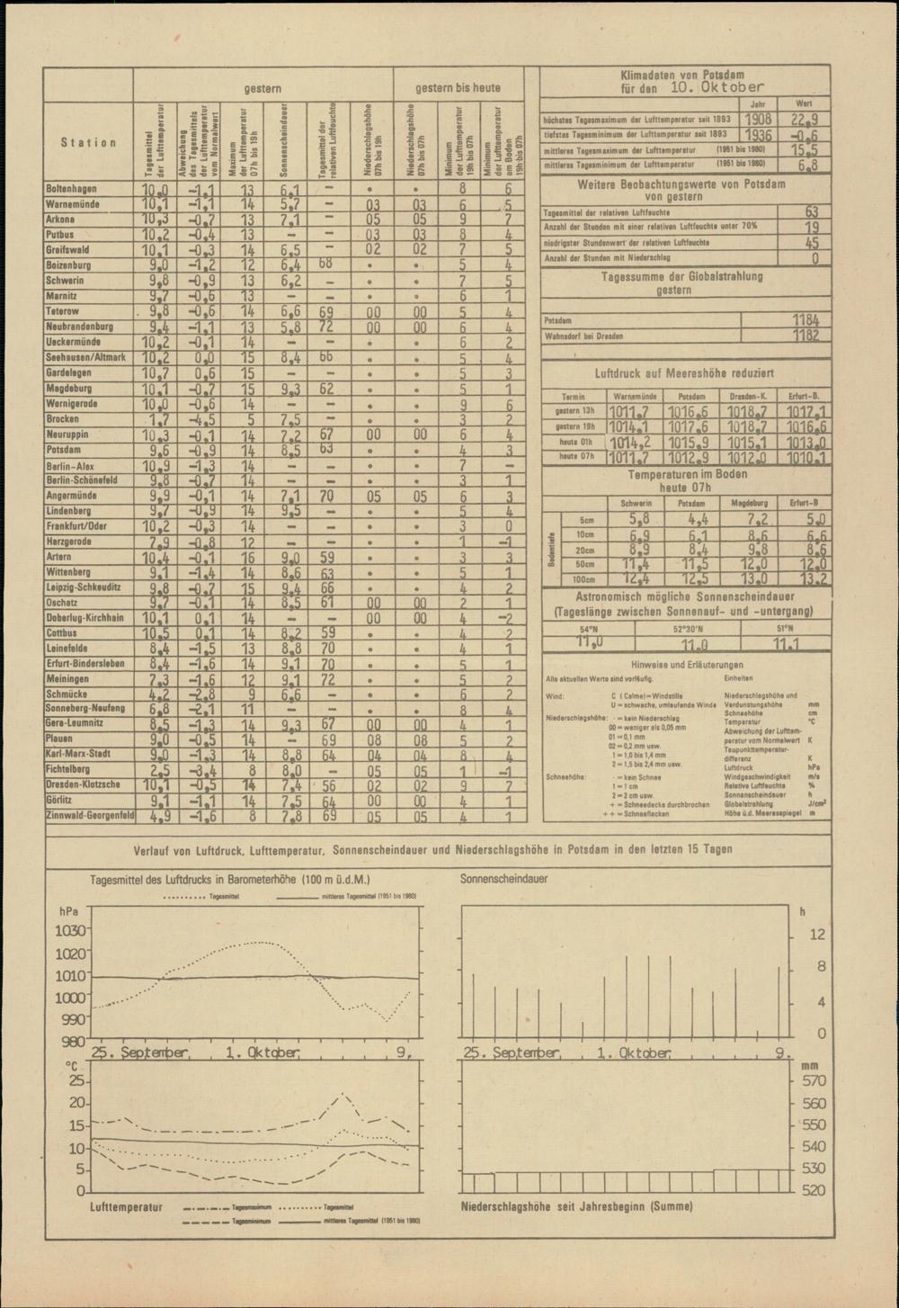 Täglicher Wetterbericht des Meteorologischen Dienstes der Deutschen Demokratischen...
