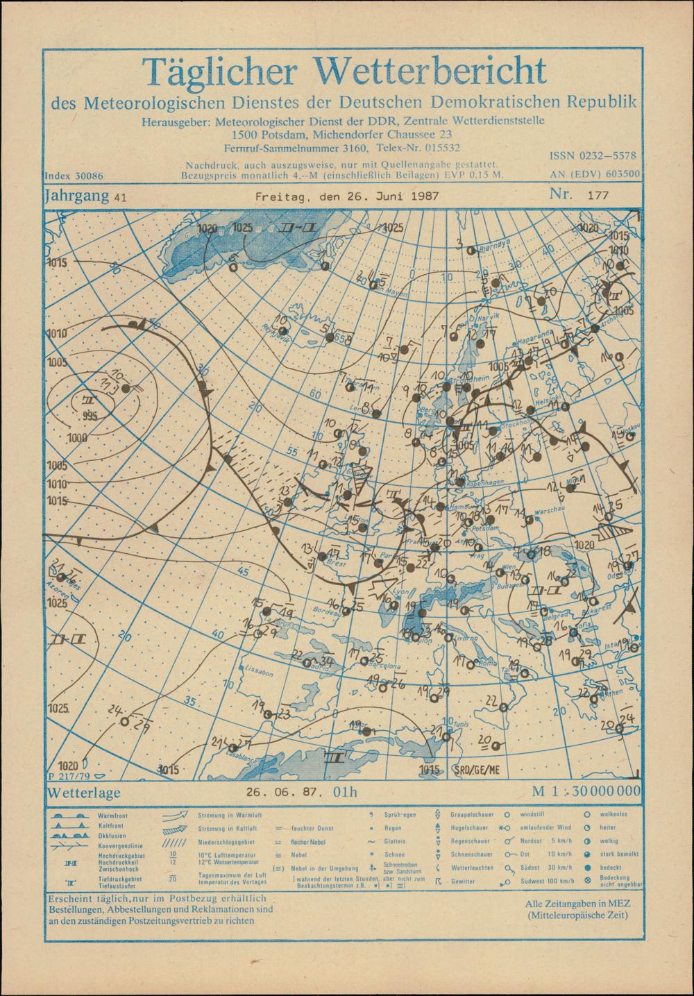 Täglicher Wetterbericht des Meteorologischen Dienstes der Deutschen Demokratischen...