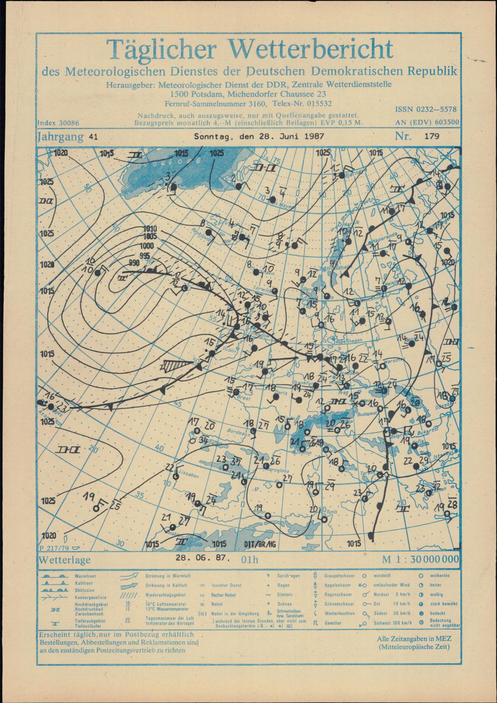 Täglicher Wetterbericht des Meteorologischen Dienstes der Deutschen Demokratischen...