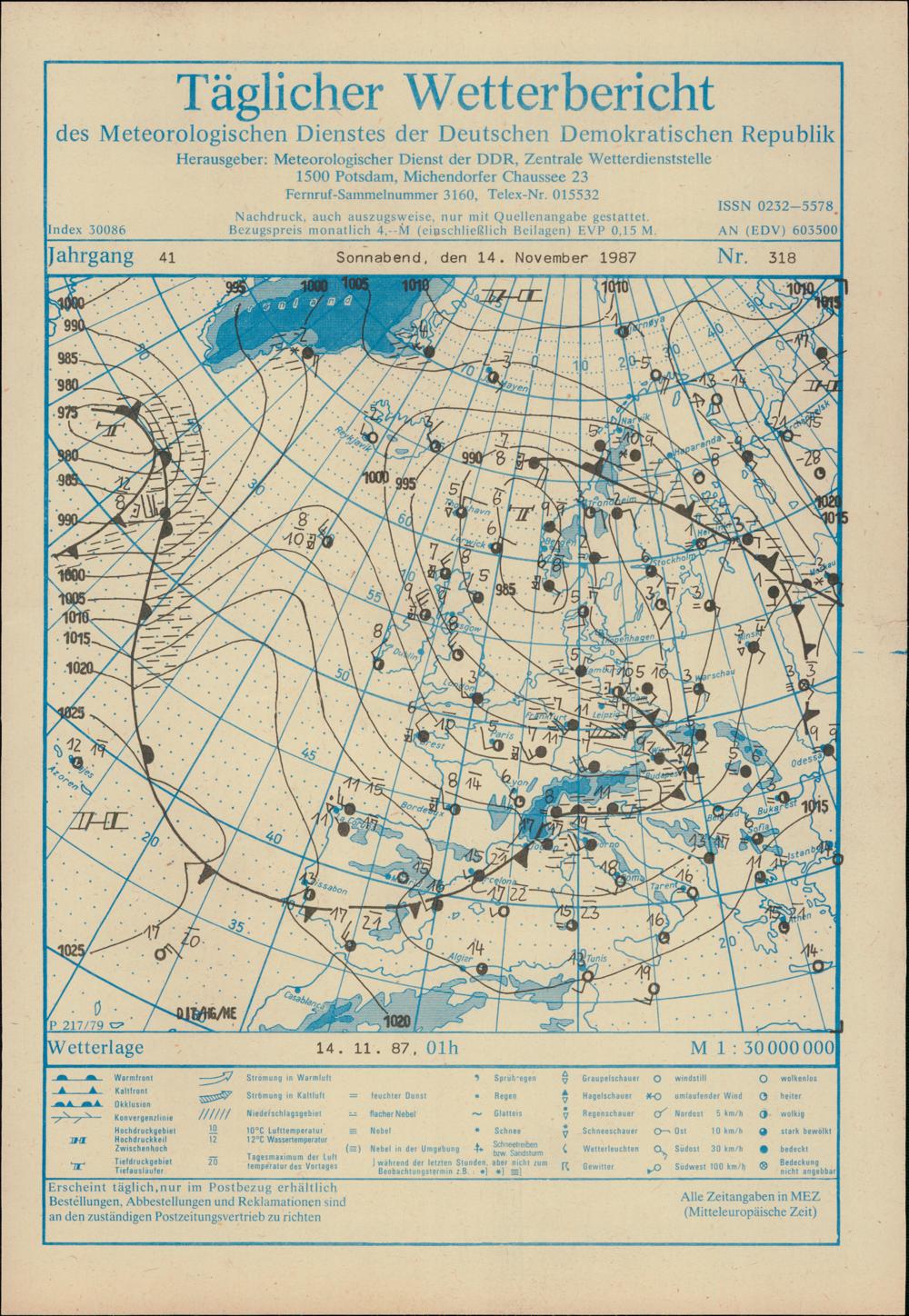 Täglicher Wetterbericht des Meteorologischen Dienstes der Deutschen Demokratischen...