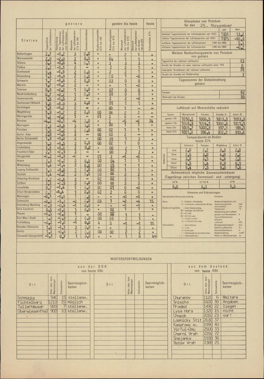 Täglicher Wetterbericht des Meteorologischen Dienstes der Deutschen Demokratischen...