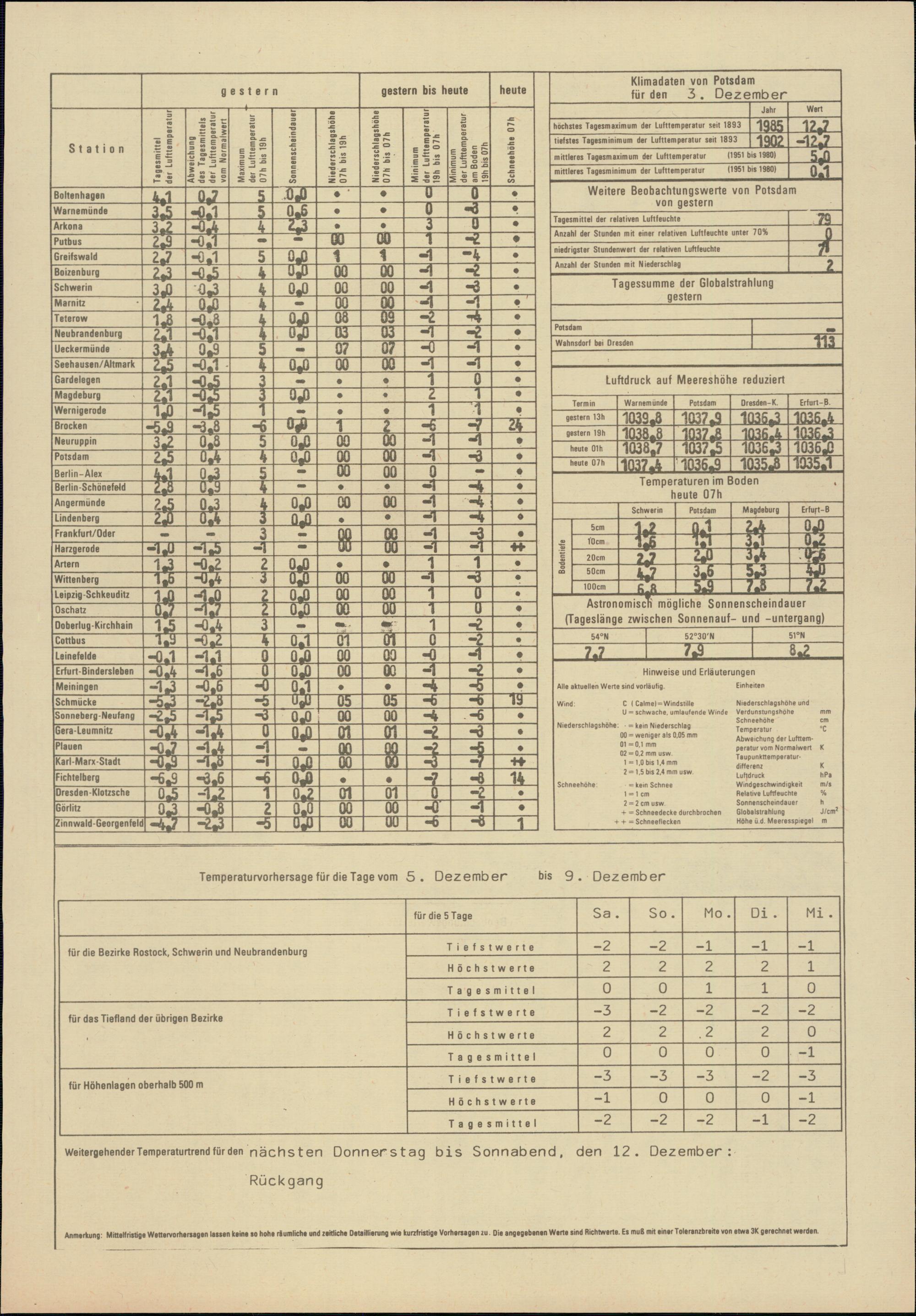 Täglicher Wetterbericht des Meteorologischen Dienstes der Deutschen Demokratischen...
