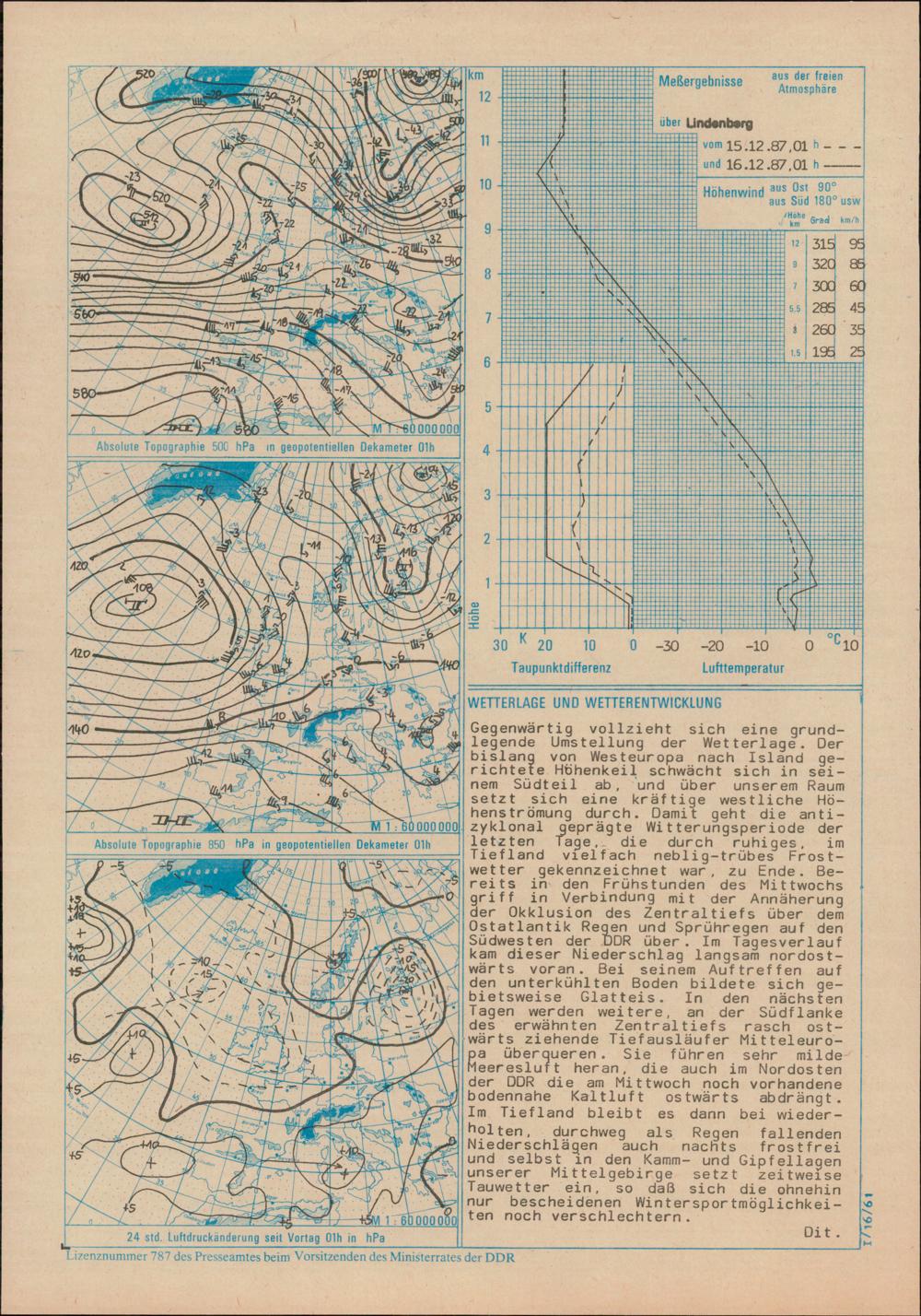 Täglicher Wetterbericht des Meteorologischen Dienstes der Deutschen Demokratischen...