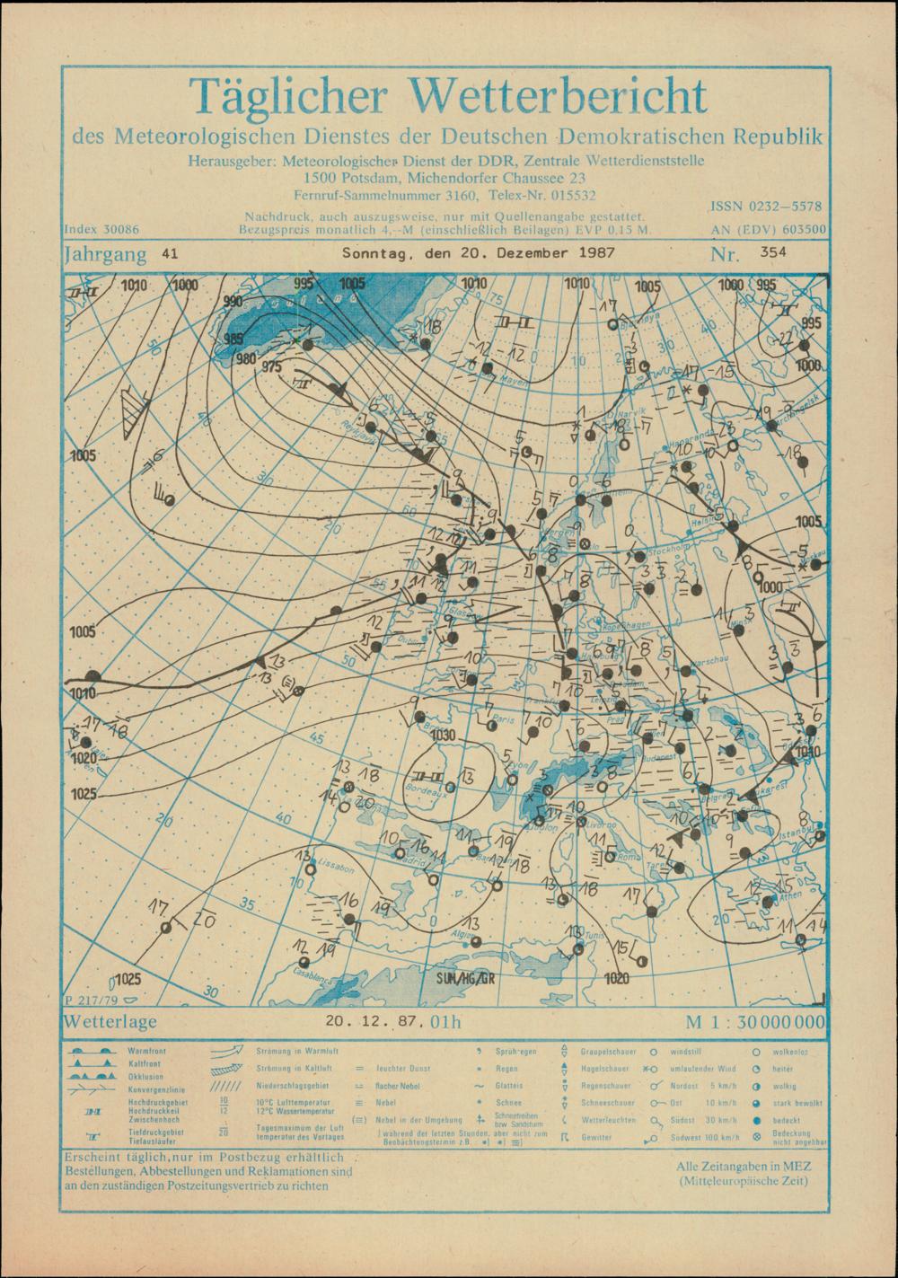 Täglicher Wetterbericht des Meteorologischen Dienstes der Deutschen Demokratischen...
