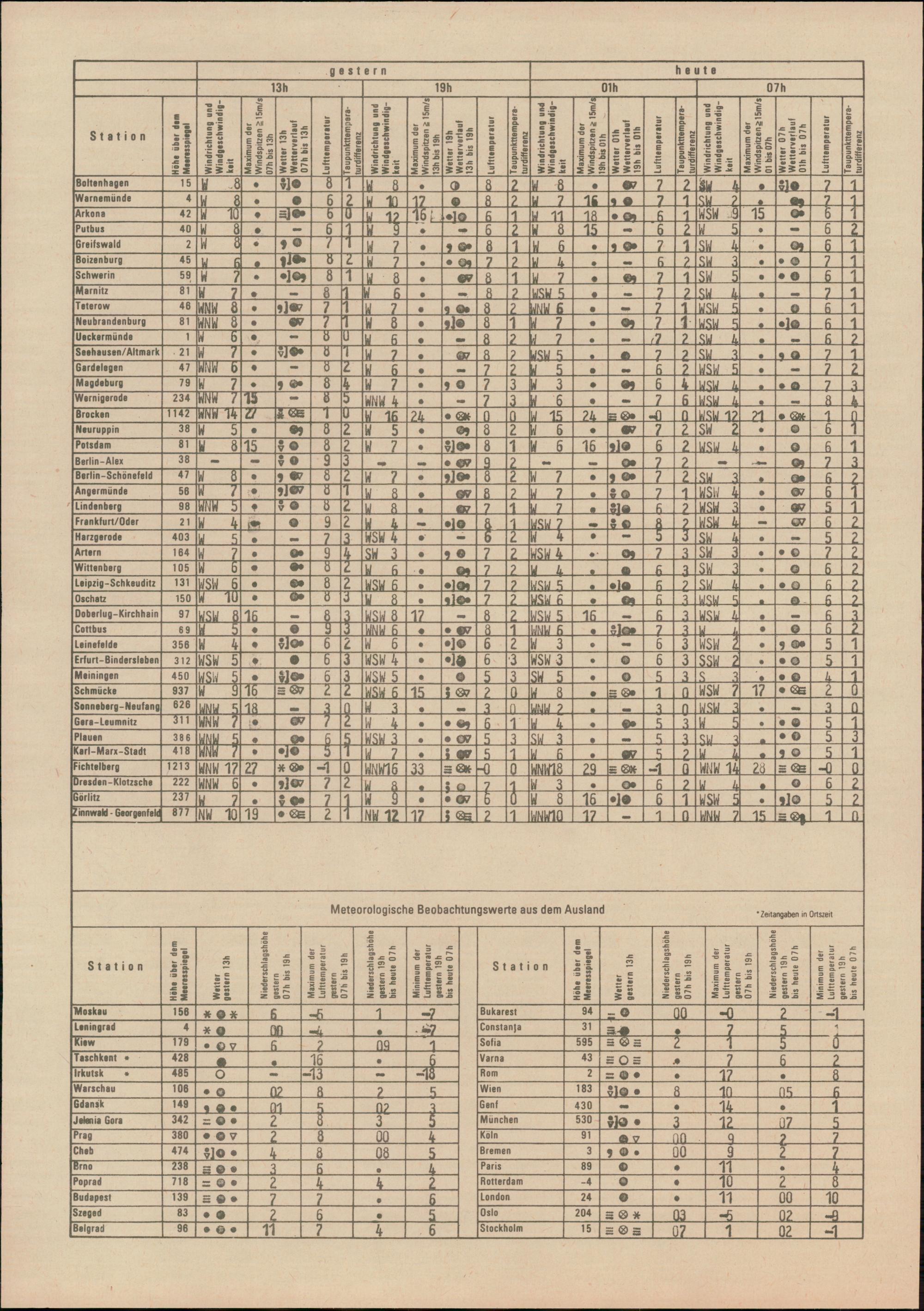 Täglicher Wetterbericht des Meteorologischen Dienstes der Deutschen Demokratischen...