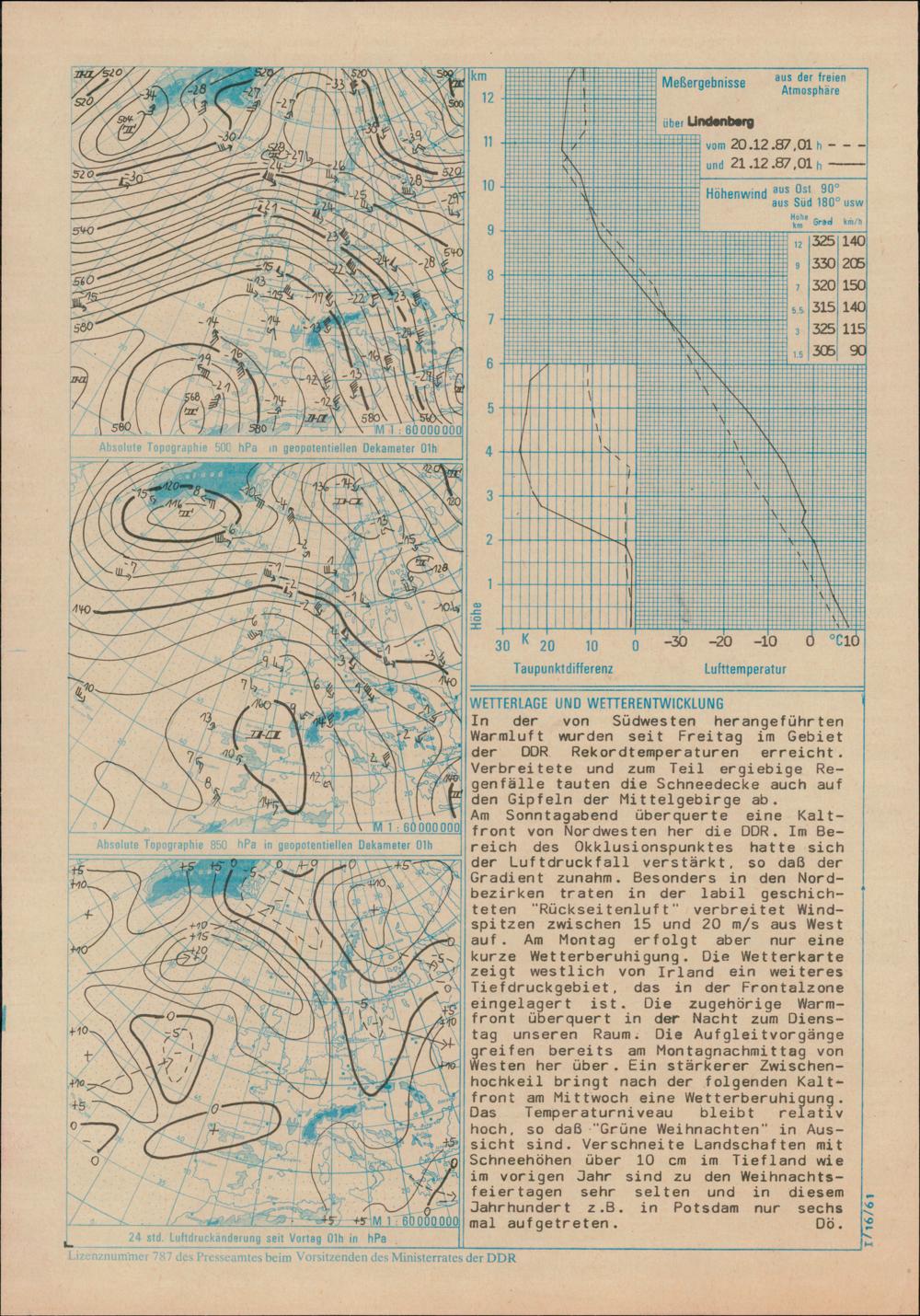 Täglicher Wetterbericht des Meteorologischen Dienstes der Deutschen Demokratischen...