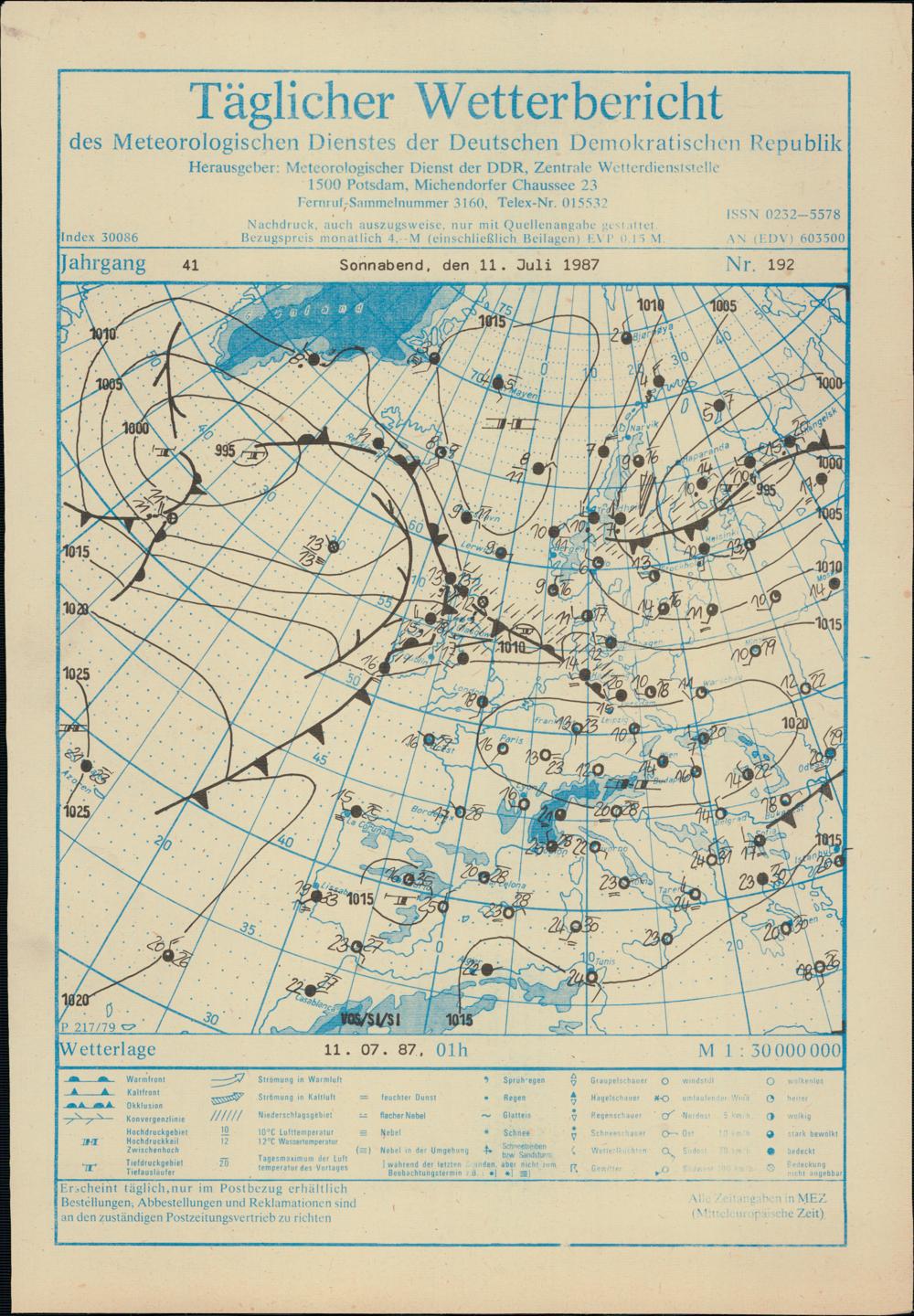 Täglicher Wetterbericht des Meteorologischen Dienstes der Deutschen Demokratischen...