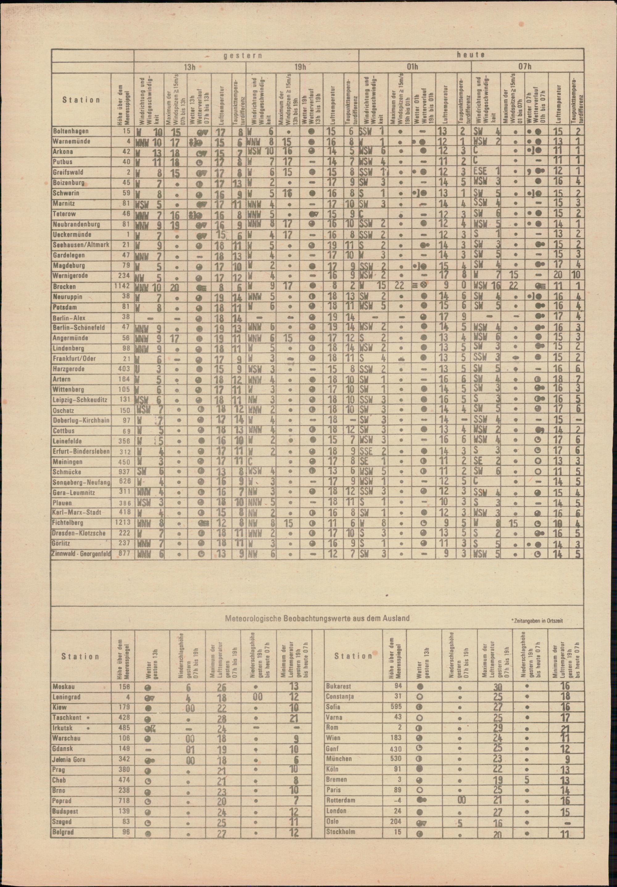 Täglicher Wetterbericht des Meteorologischen Dienstes der Deutschen Demokratischen...