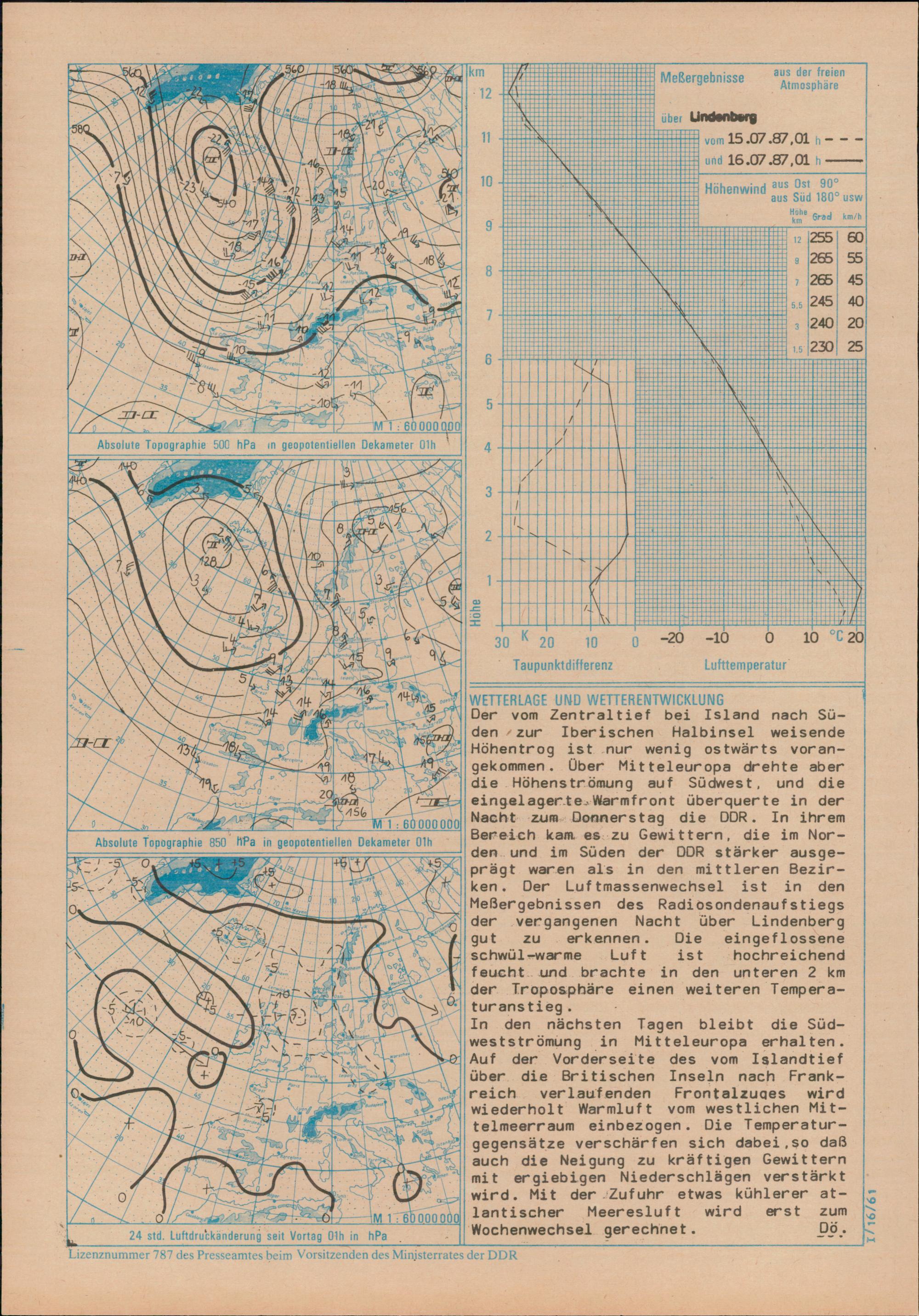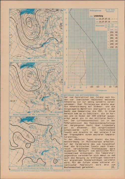 Täglicher Wetterbericht des Meteorologischen Dienstes der Deutschen Demokratischen...