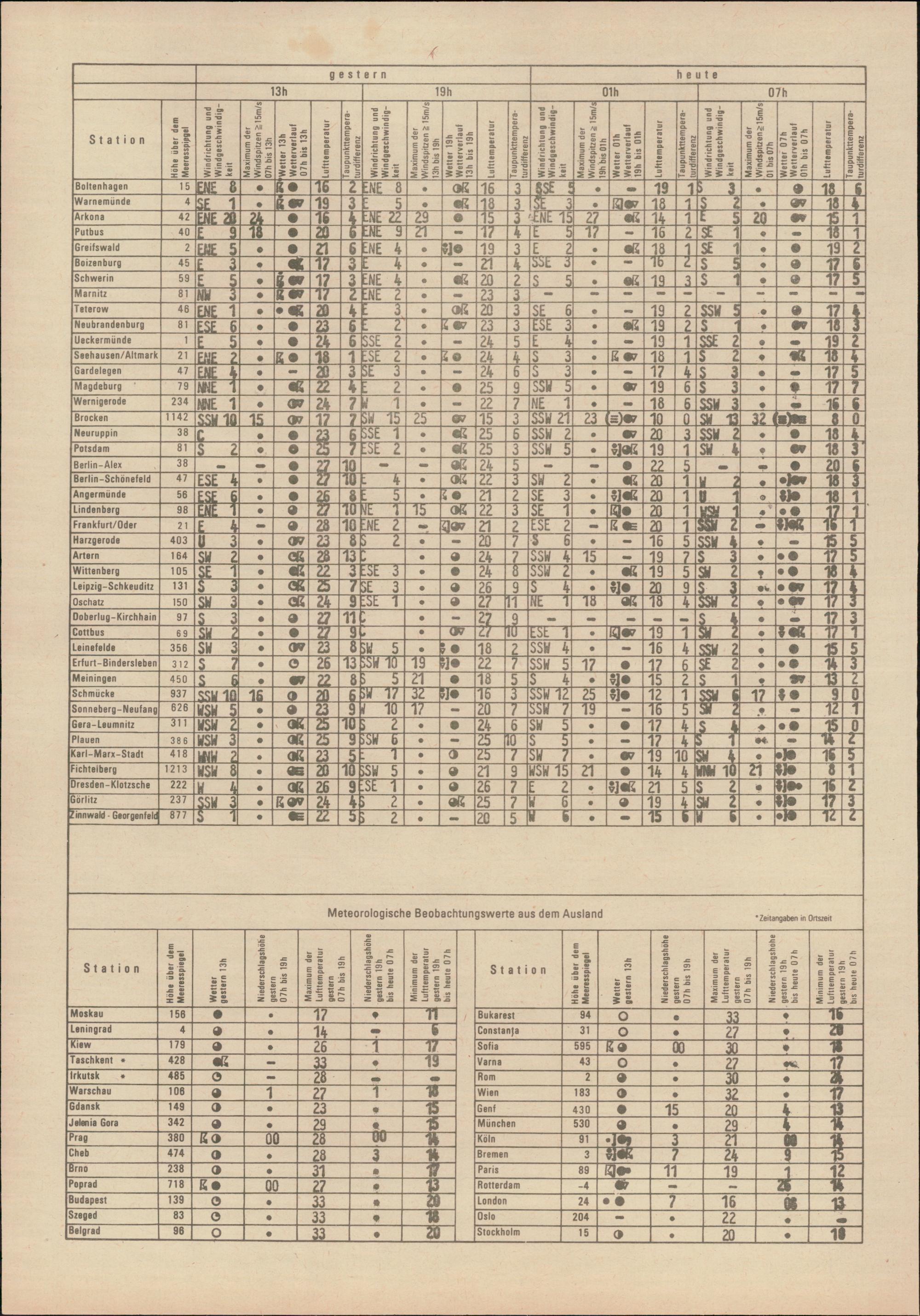 Täglicher Wetterbericht des Meteorologischen Dienstes der Deutschen Demokratischen...