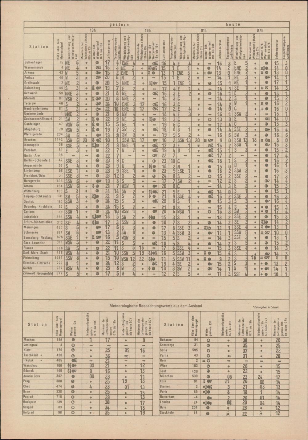 Täglicher Wetterbericht des Meteorologischen Dienstes der Deutschen Demokratischen...
