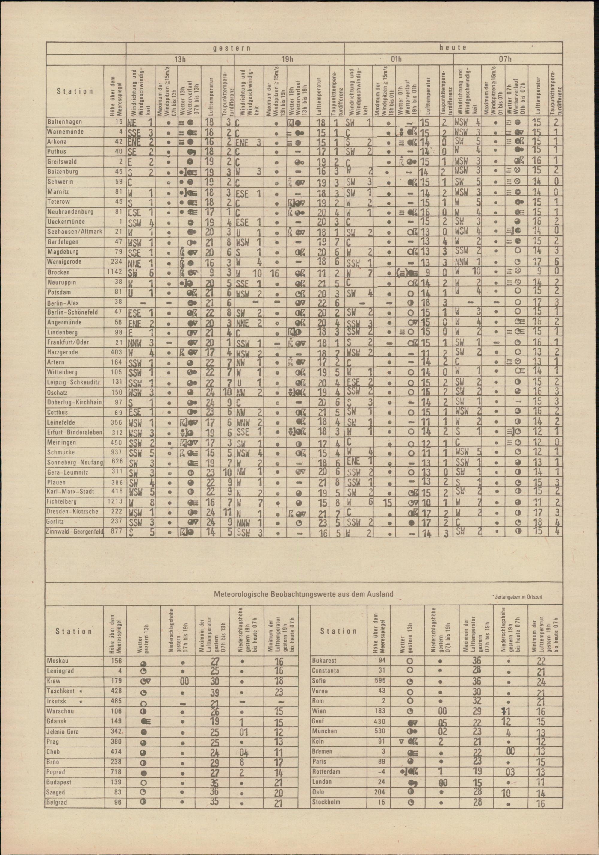 Täglicher Wetterbericht des Meteorologischen Dienstes der Deutschen Demokratischen...