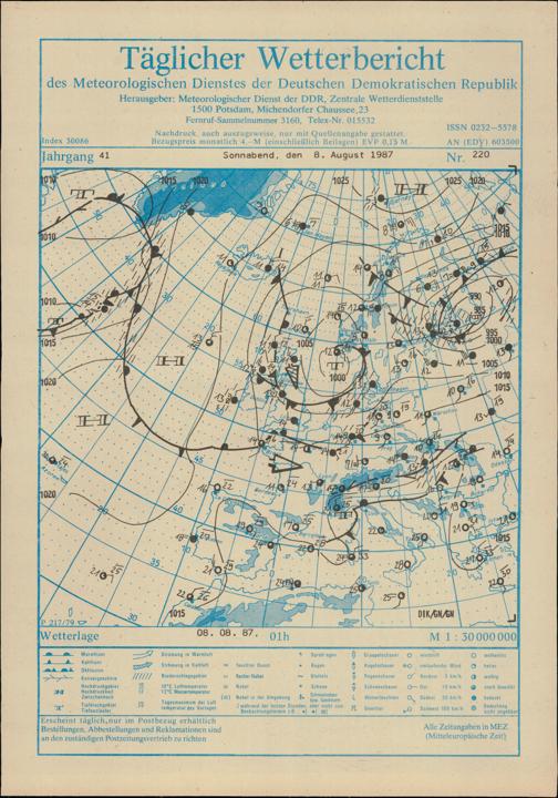 Täglicher Wetterbericht des Meteorologischen Dienstes der Deutschen Demokratischen...