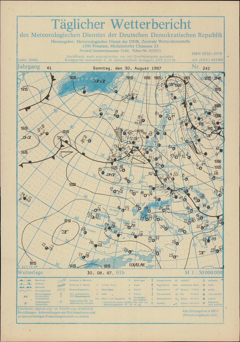 Täglicher Wetterbericht des Meteorologischen Dienstes der Deutschen Demokratischen...