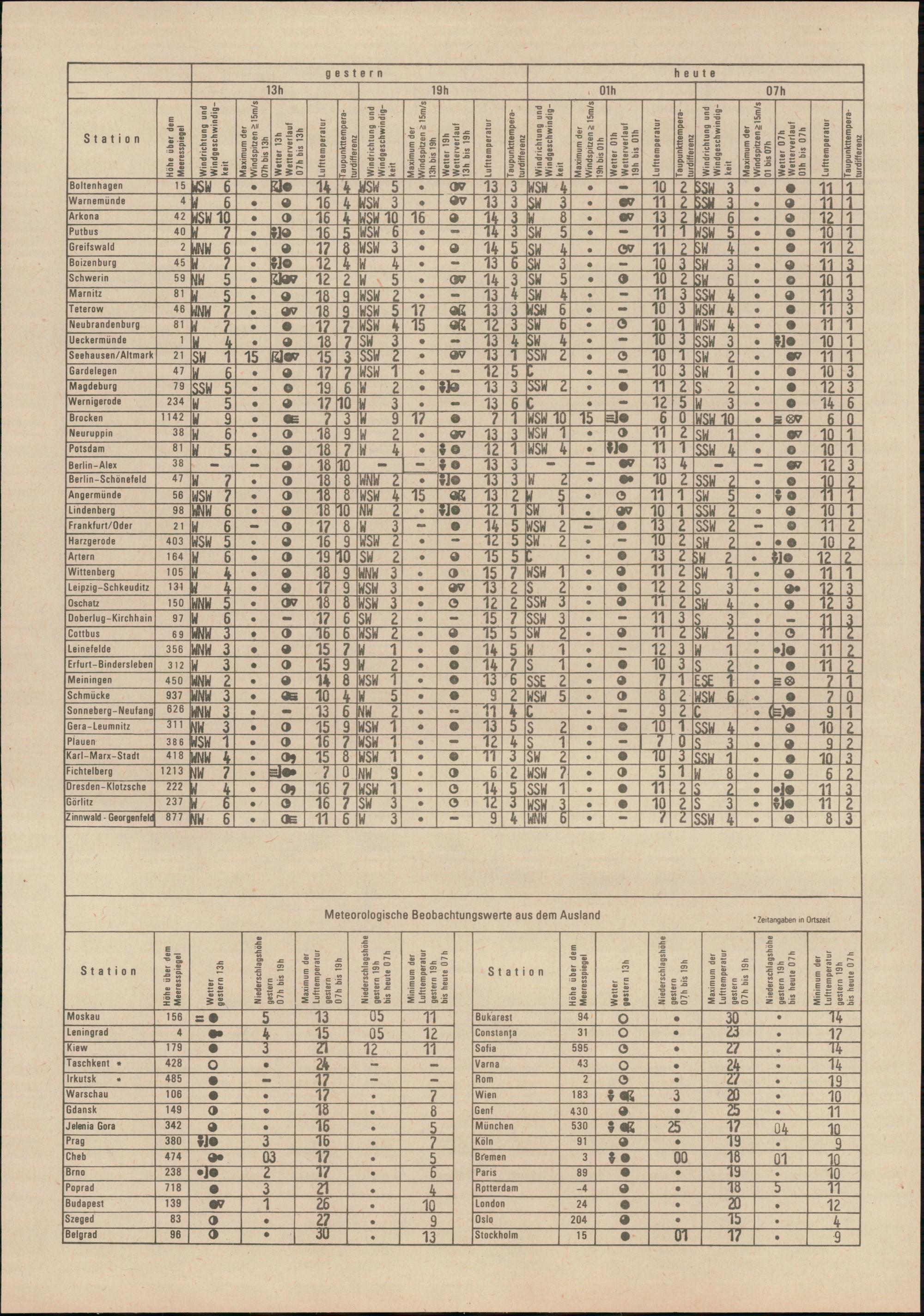 Täglicher Wetterbericht des Meteorologischen Dienstes der Deutschen Demokratischen...