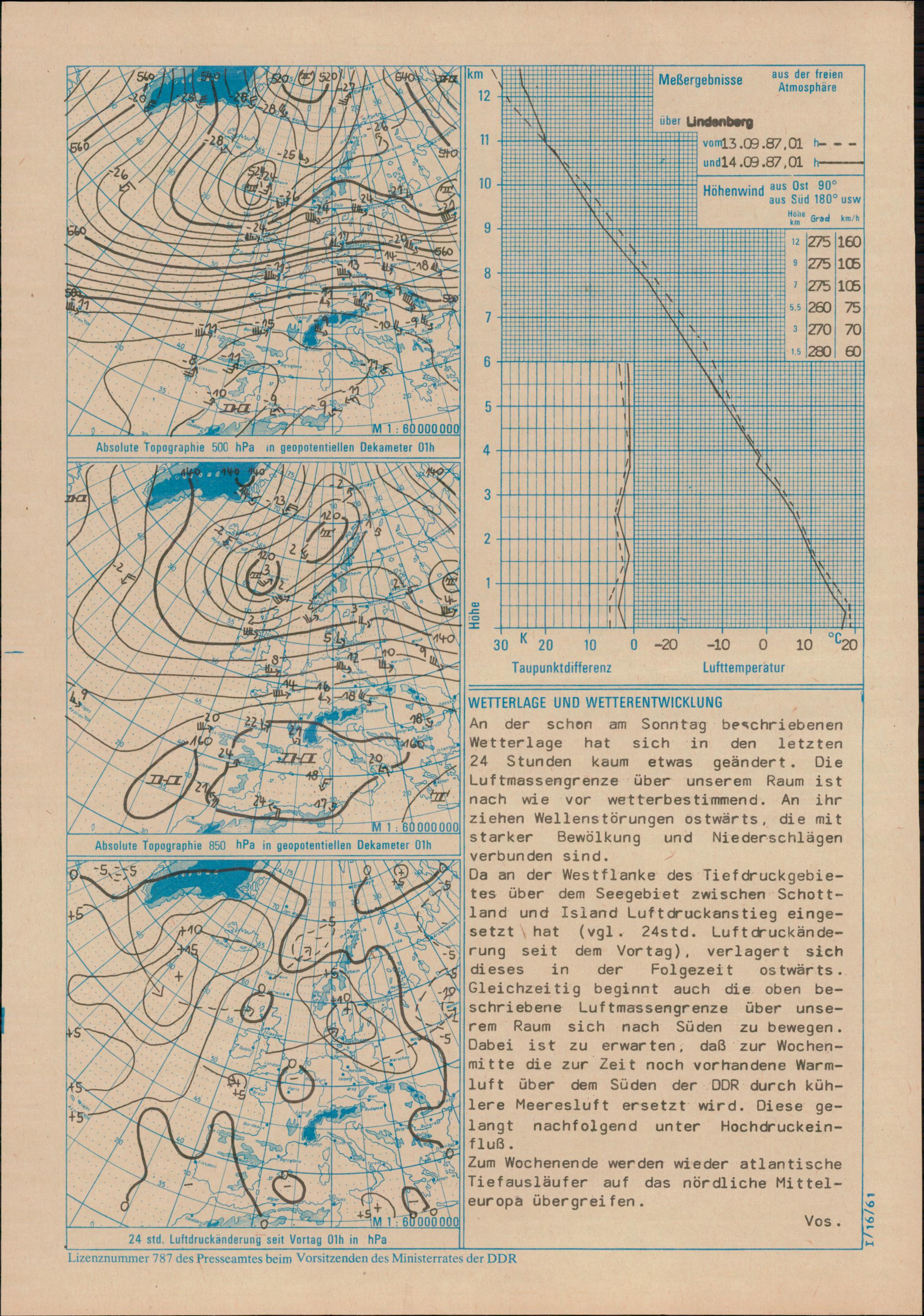 Täglicher Wetterbericht des Meteorologischen Dienstes der Deutschen Demokratischen...