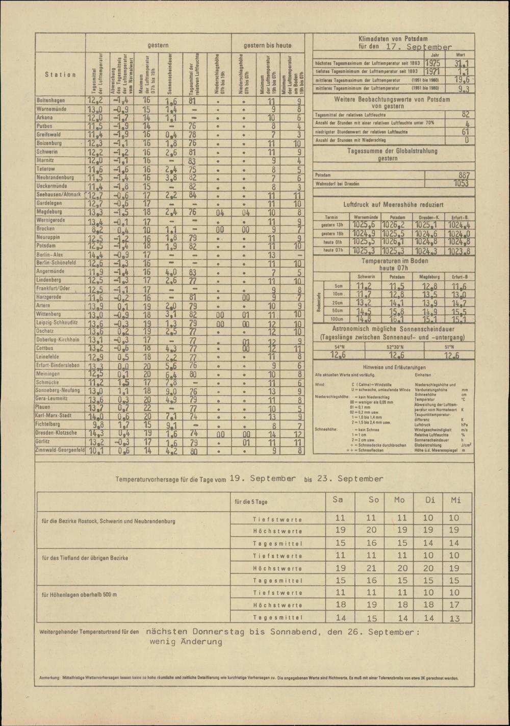 Täglicher Wetterbericht des Meteorologischen Dienstes der Deutschen Demokratischen...