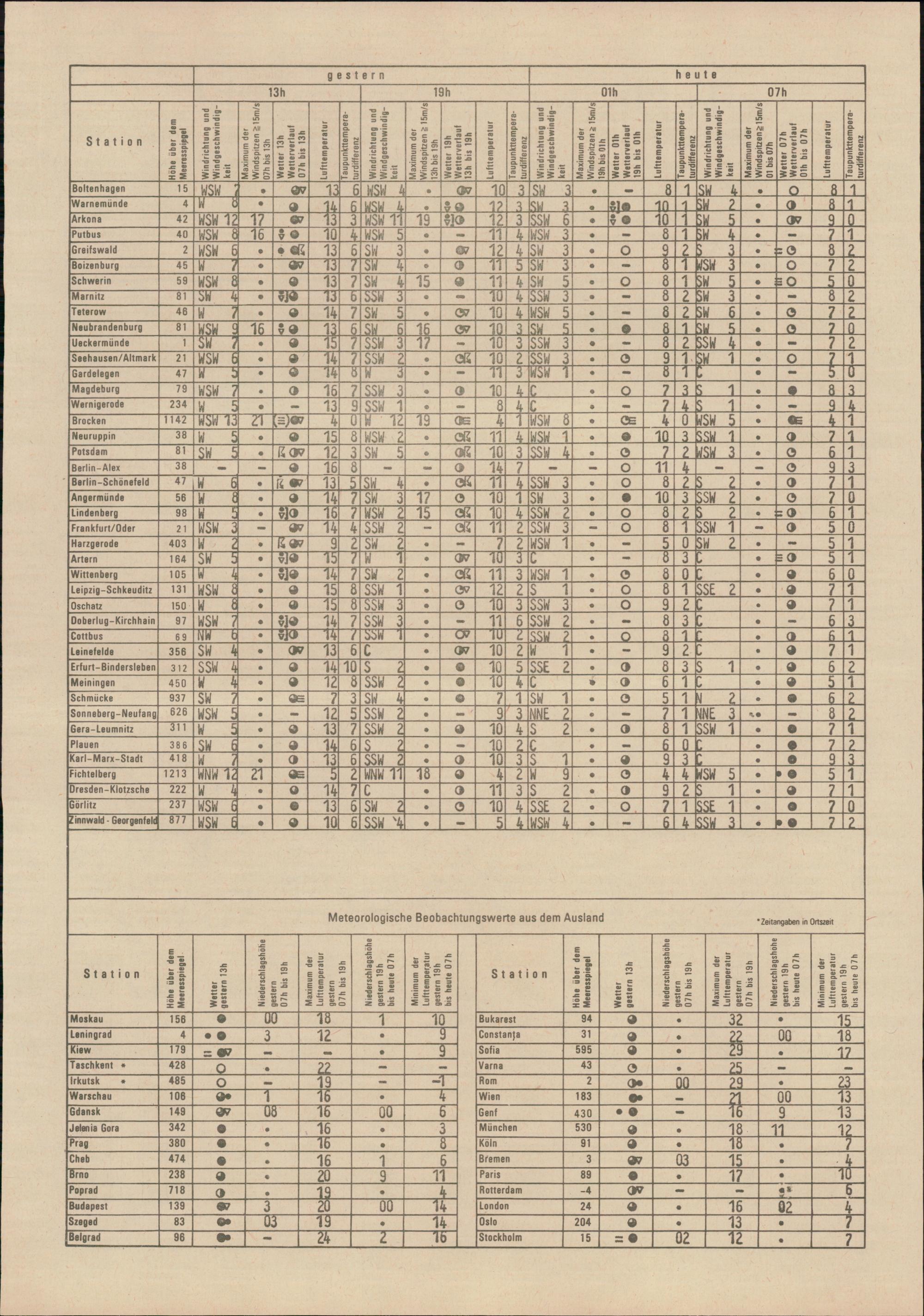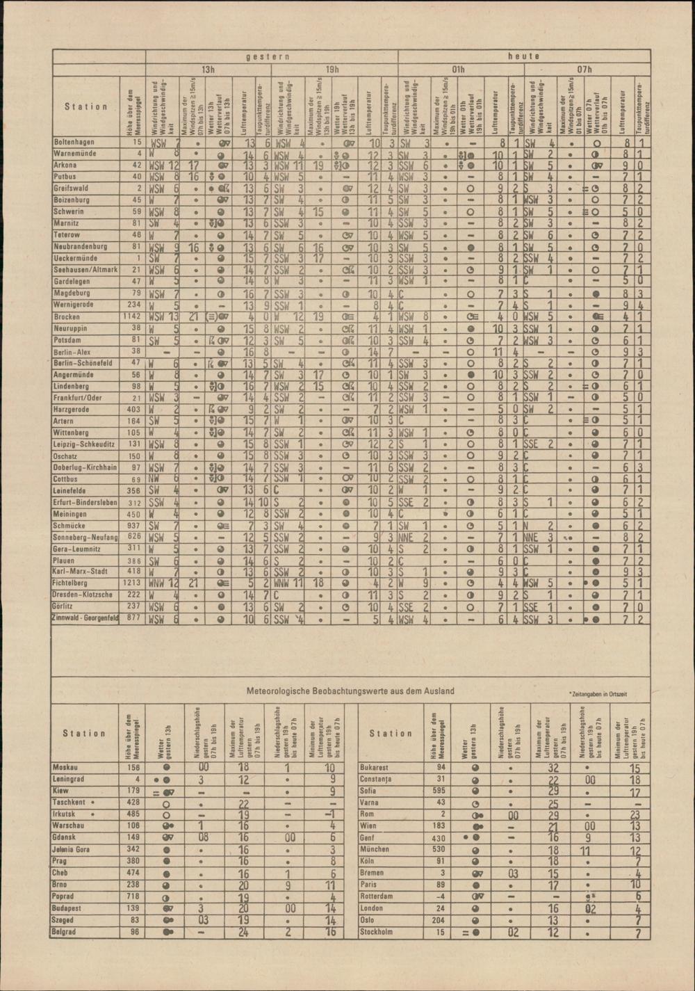 Täglicher Wetterbericht des Meteorologischen Dienstes der Deutschen Demokratischen...