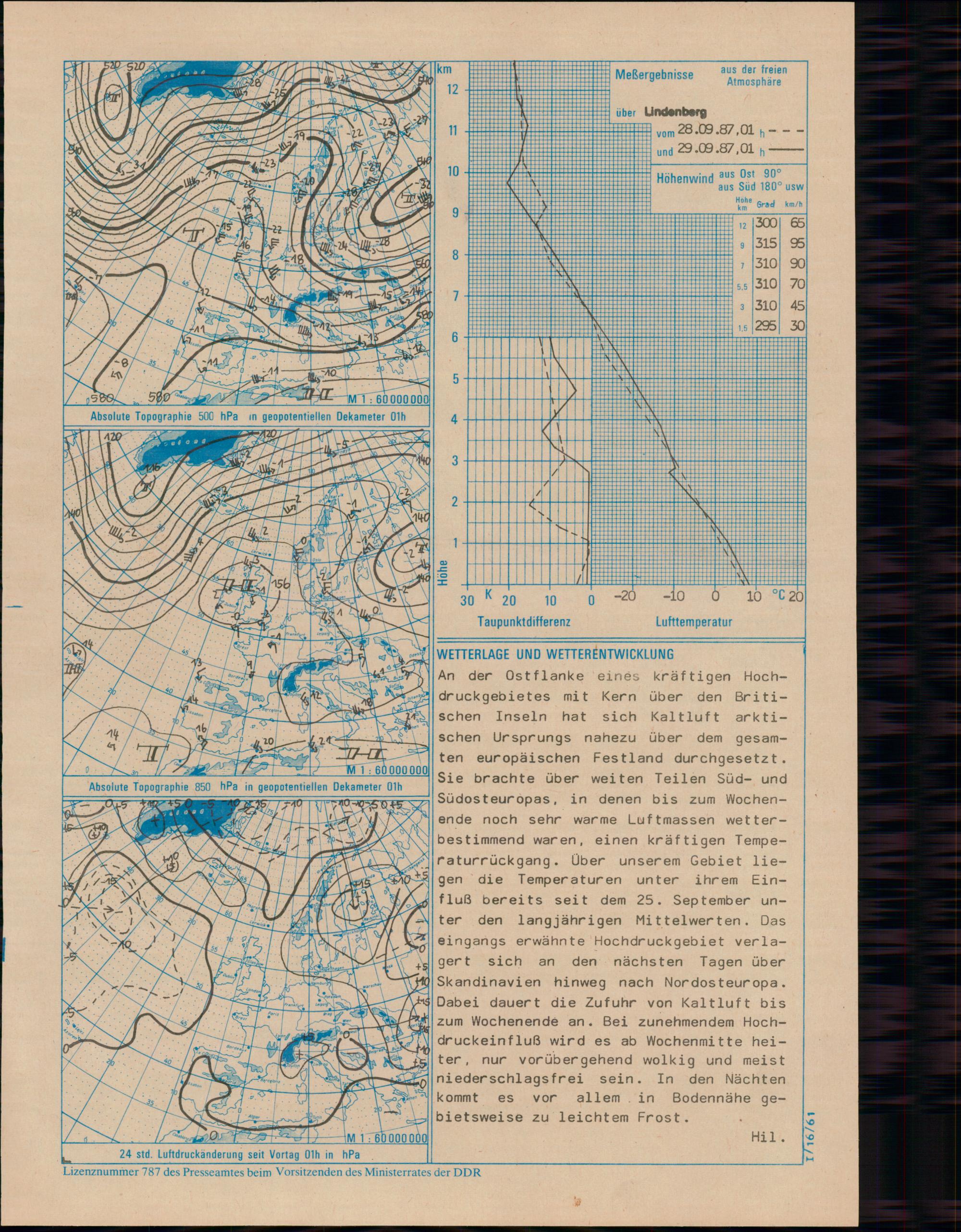 Täglicher Wetterbericht des Meteorologischen Dienstes der Deutschen Demokratischen...