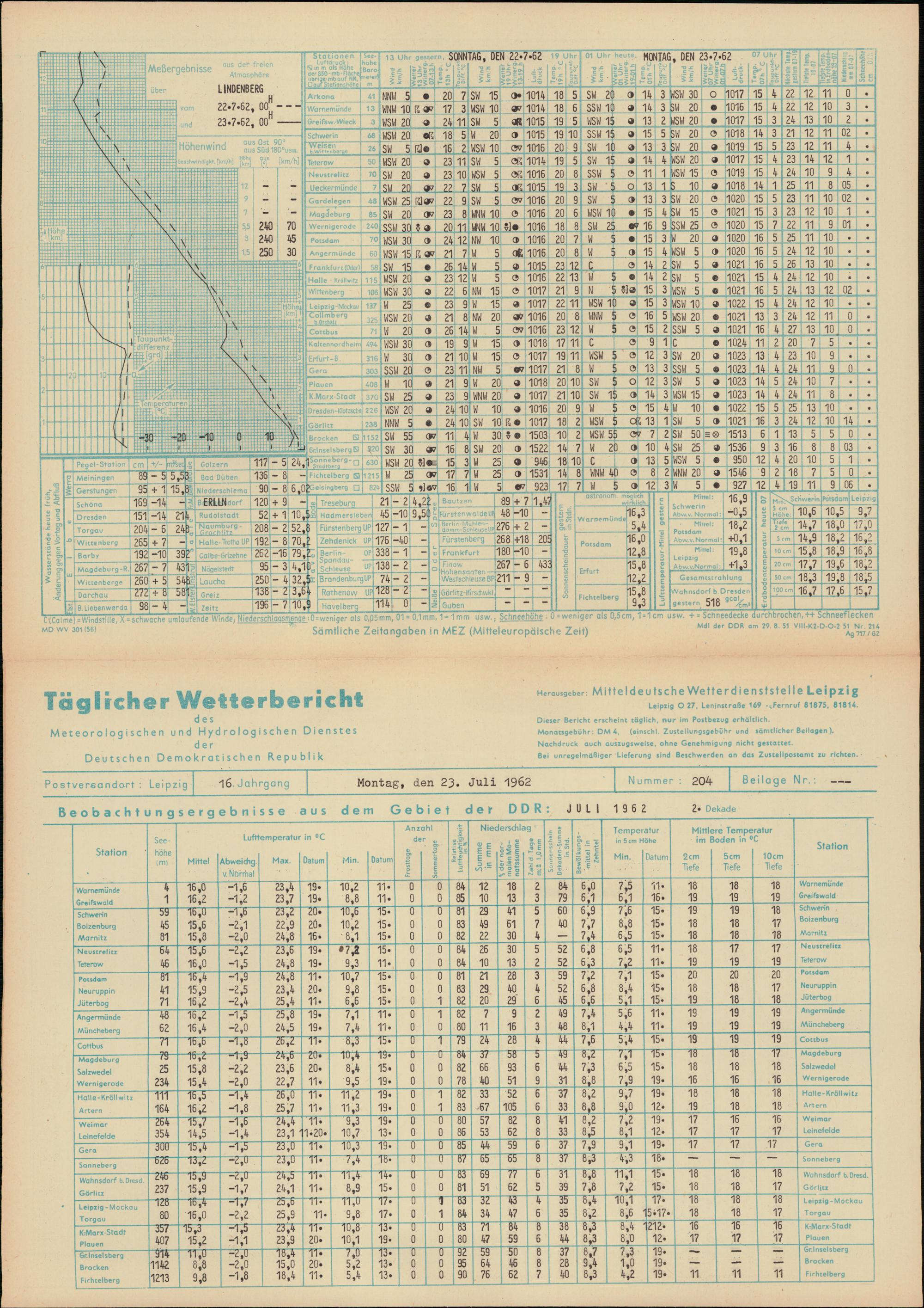 Täglicher Wetterbericht des Meteorologischen und Hydrologischen Dienstes der Deutschen...