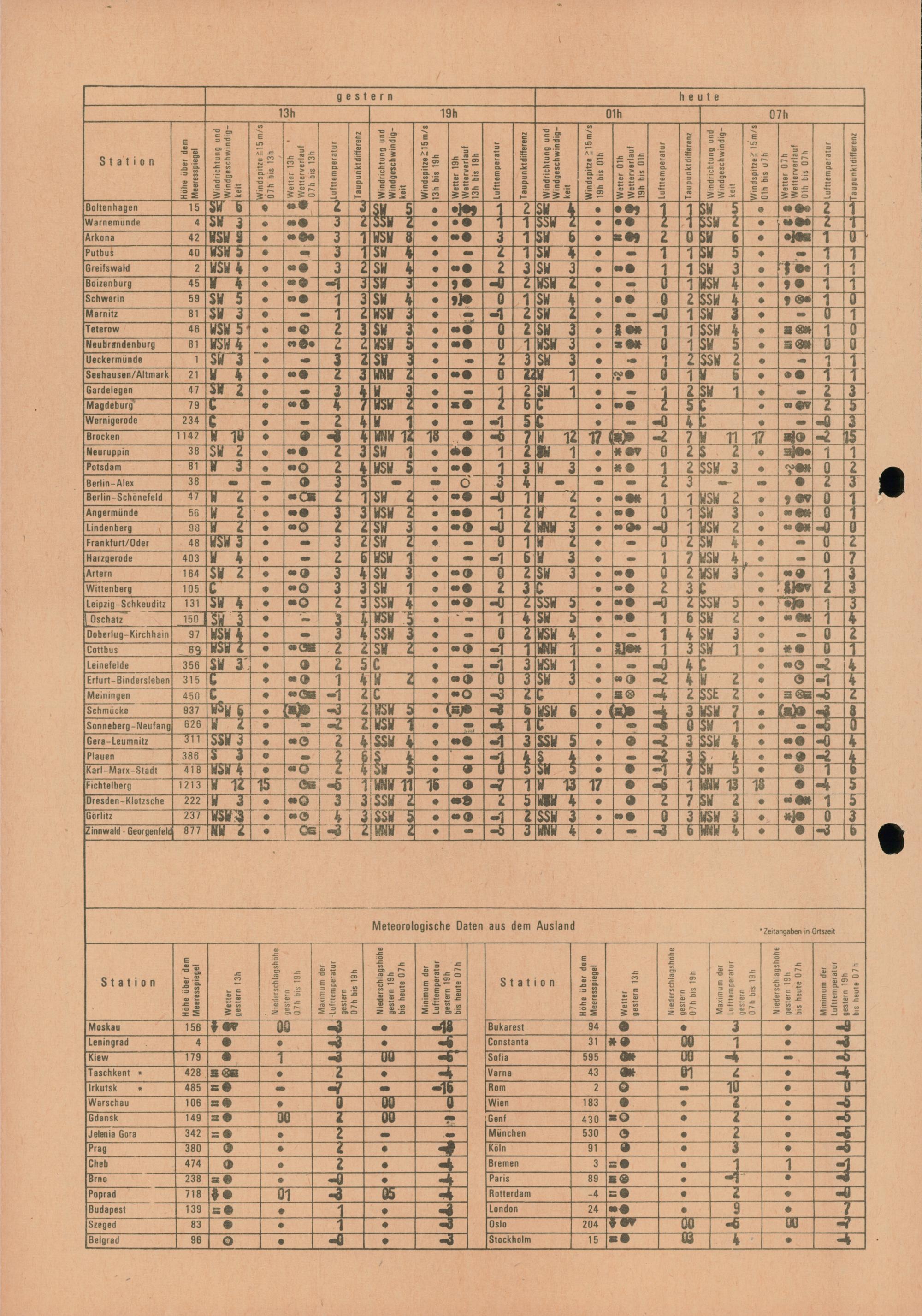 Täglicher Wetterbericht des Meteorologischen Dienstes der Deutschen Demokratischen...
