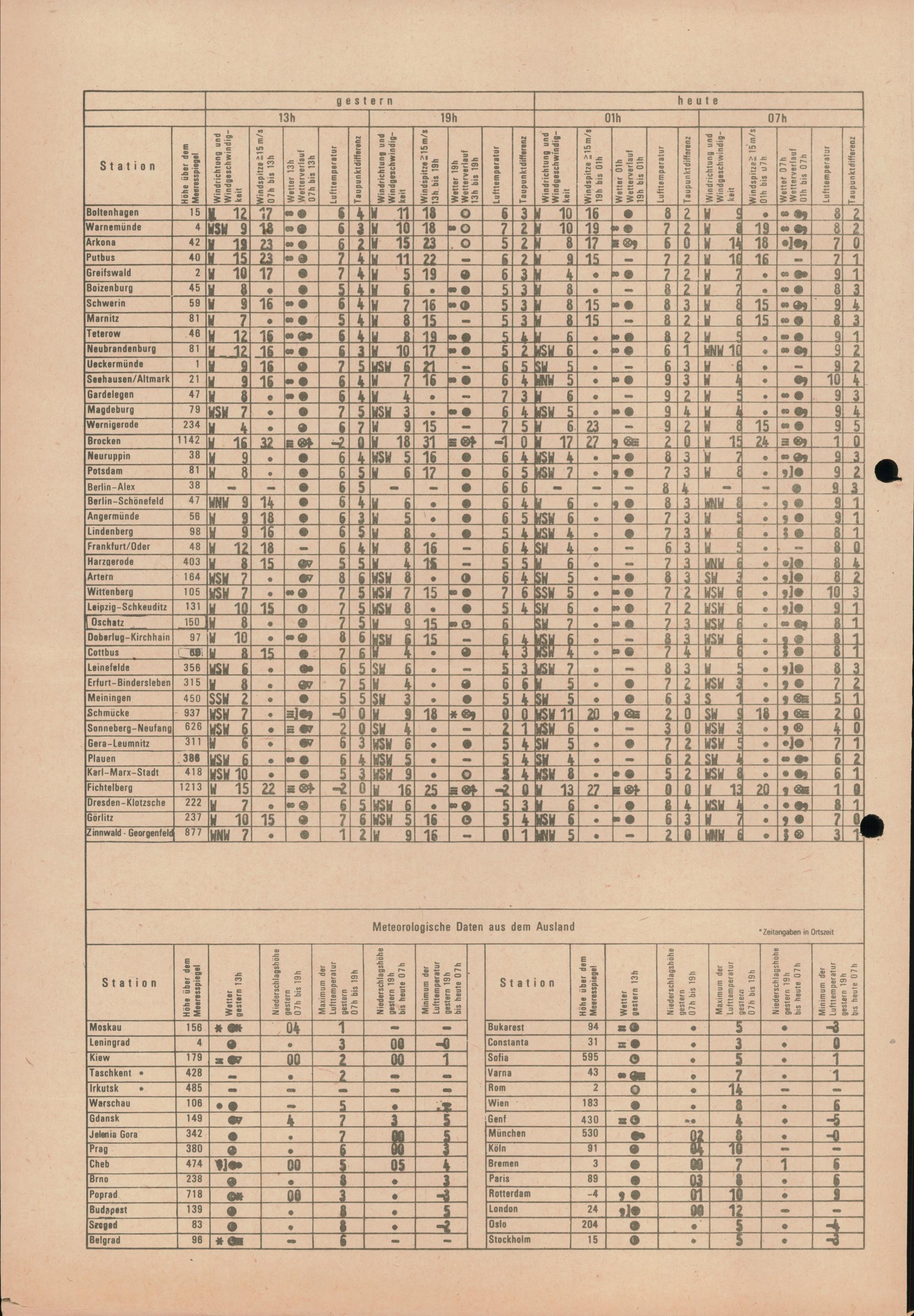 Täglicher Wetterbericht des Meteorologischen Dienstes der Deutschen Demokratischen...
