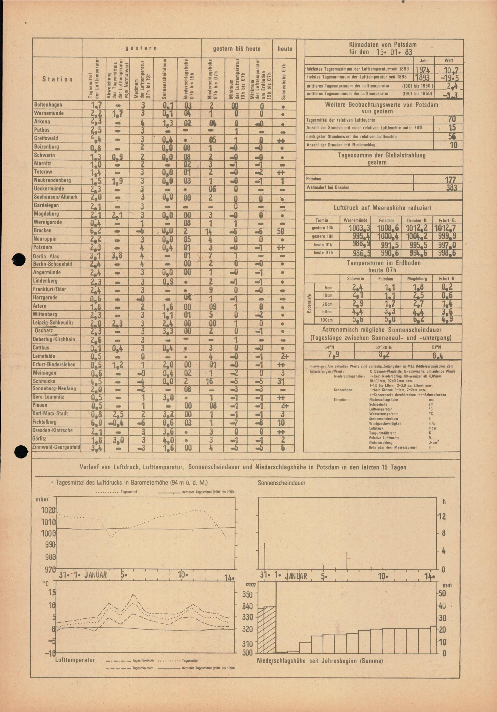 Täglicher Wetterbericht des Meteorologischen Dienstes der Deutschen Demokratischen...