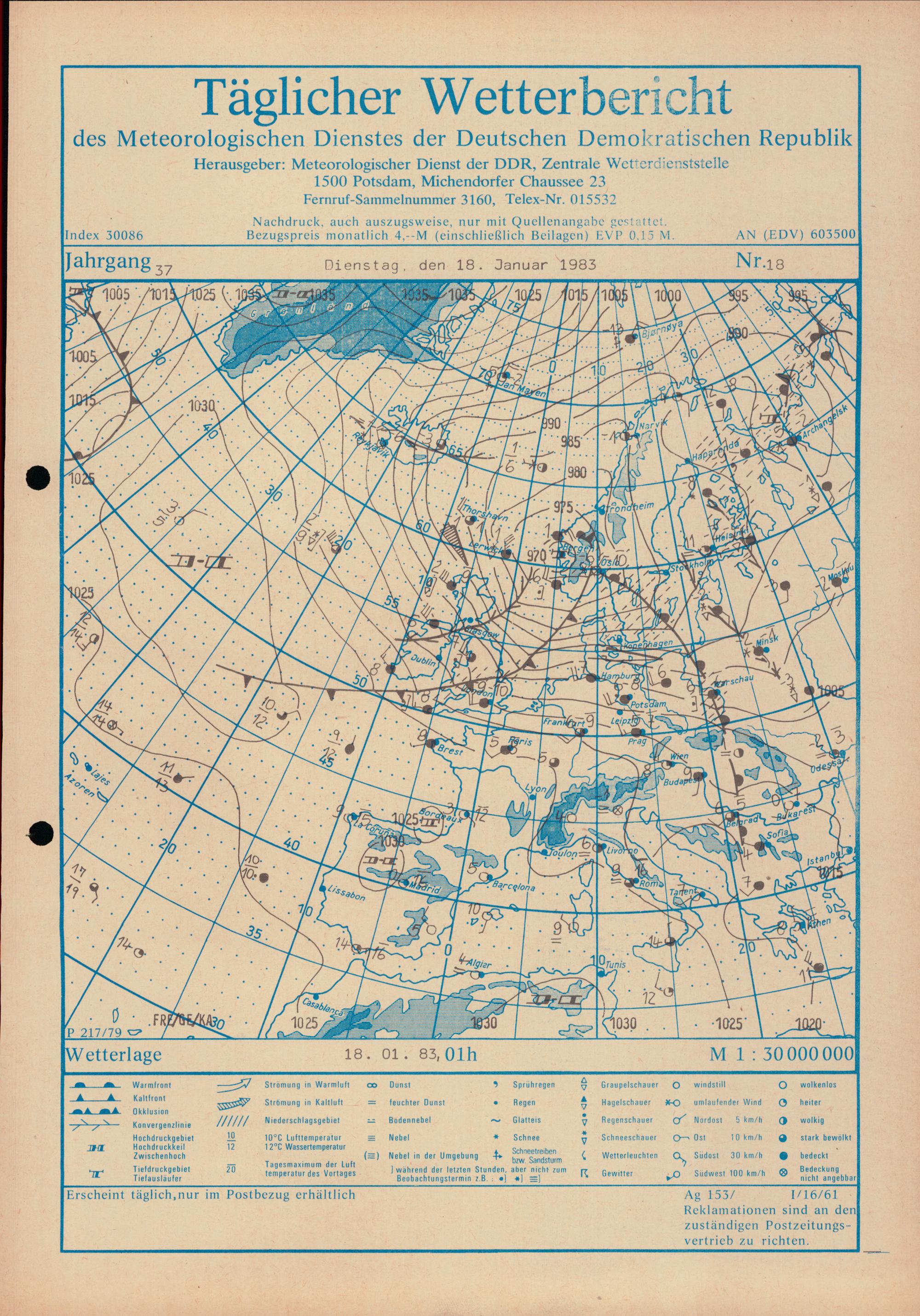 Täglicher Wetterbericht des Meteorologischen Dienstes der Deutschen Demokratischen...