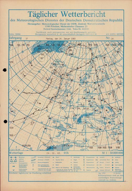 Täglicher Wetterbericht des Meteorologischen Dienstes der Deutschen Demokratischen...