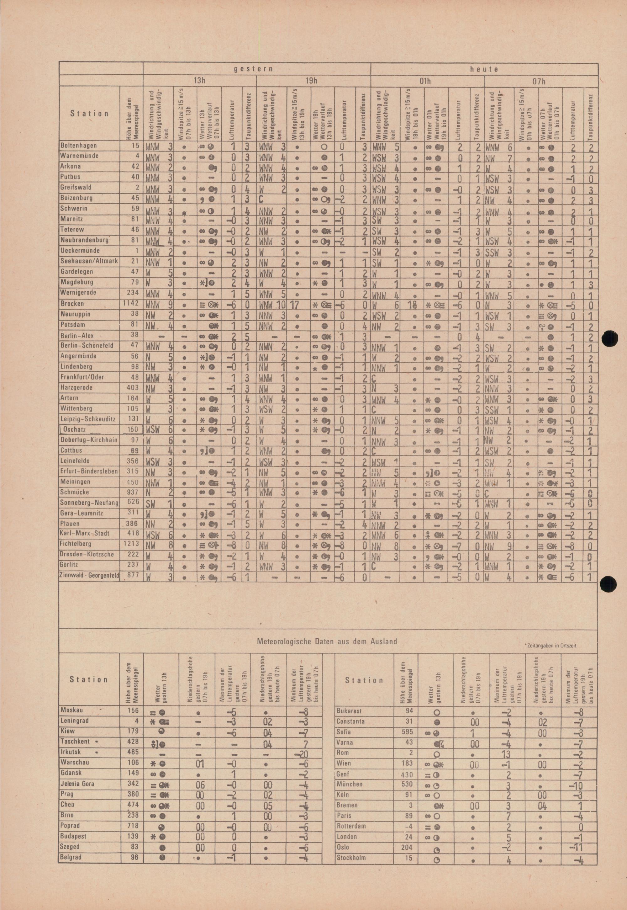 Täglicher Wetterbericht des Meteorologischen Dienstes der Deutschen Demokratischen...