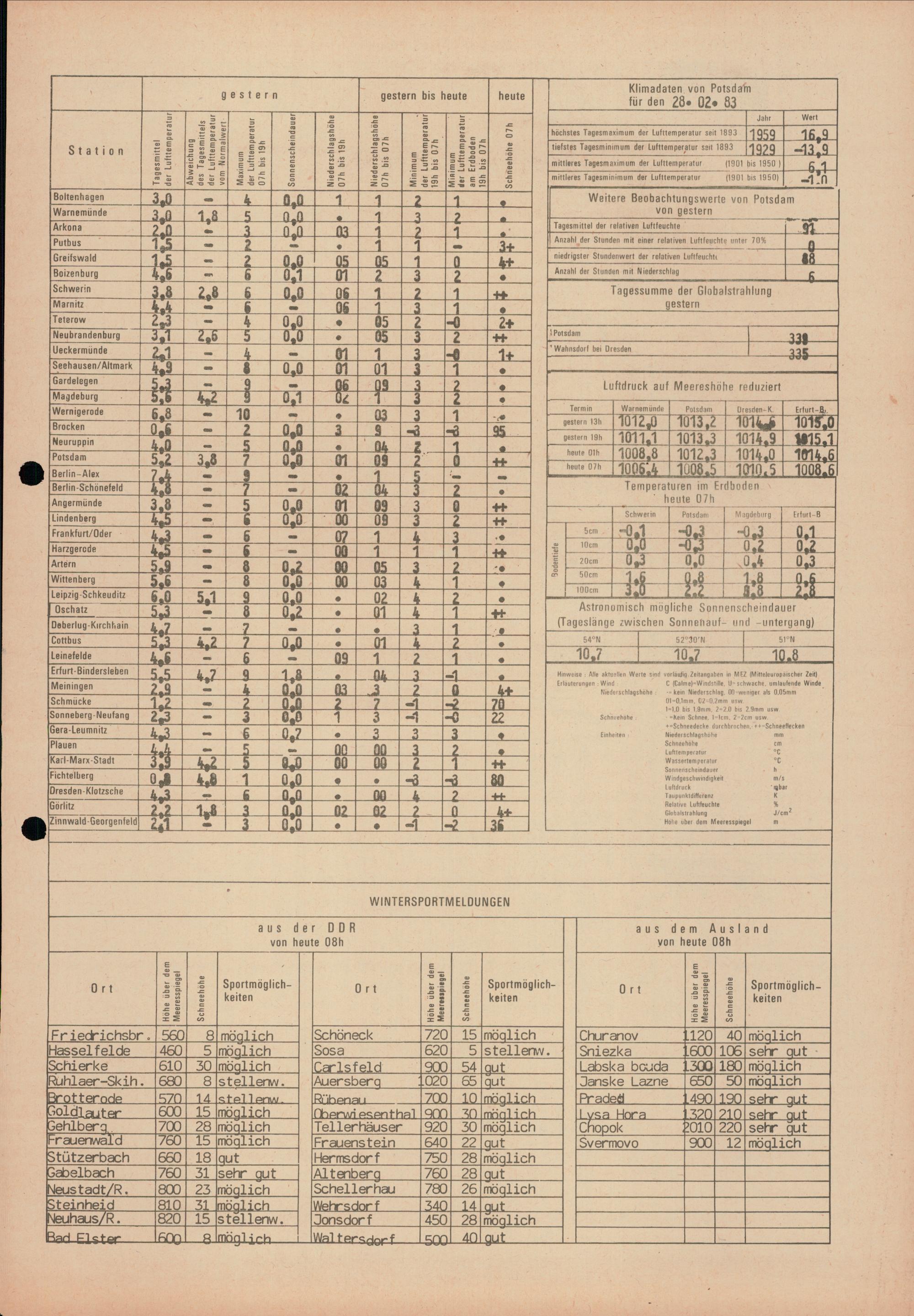 Täglicher Wetterbericht des Meteorologischen Dienstes der Deutschen Demokratischen...