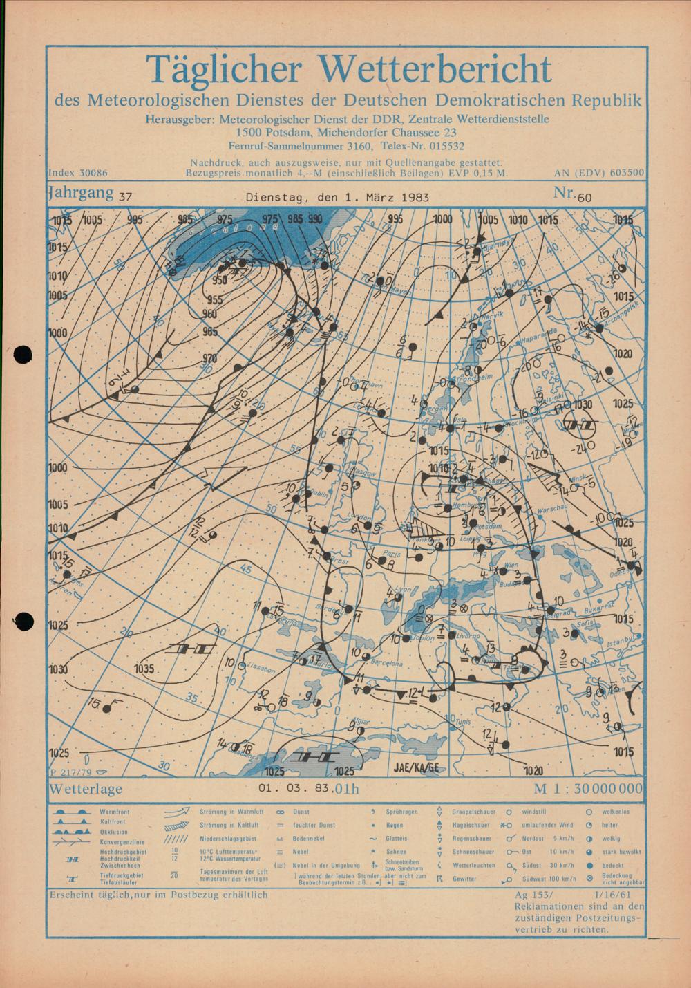 Täglicher Wetterbericht des Meteorologischen Dienstes der Deutschen Demokratischen...