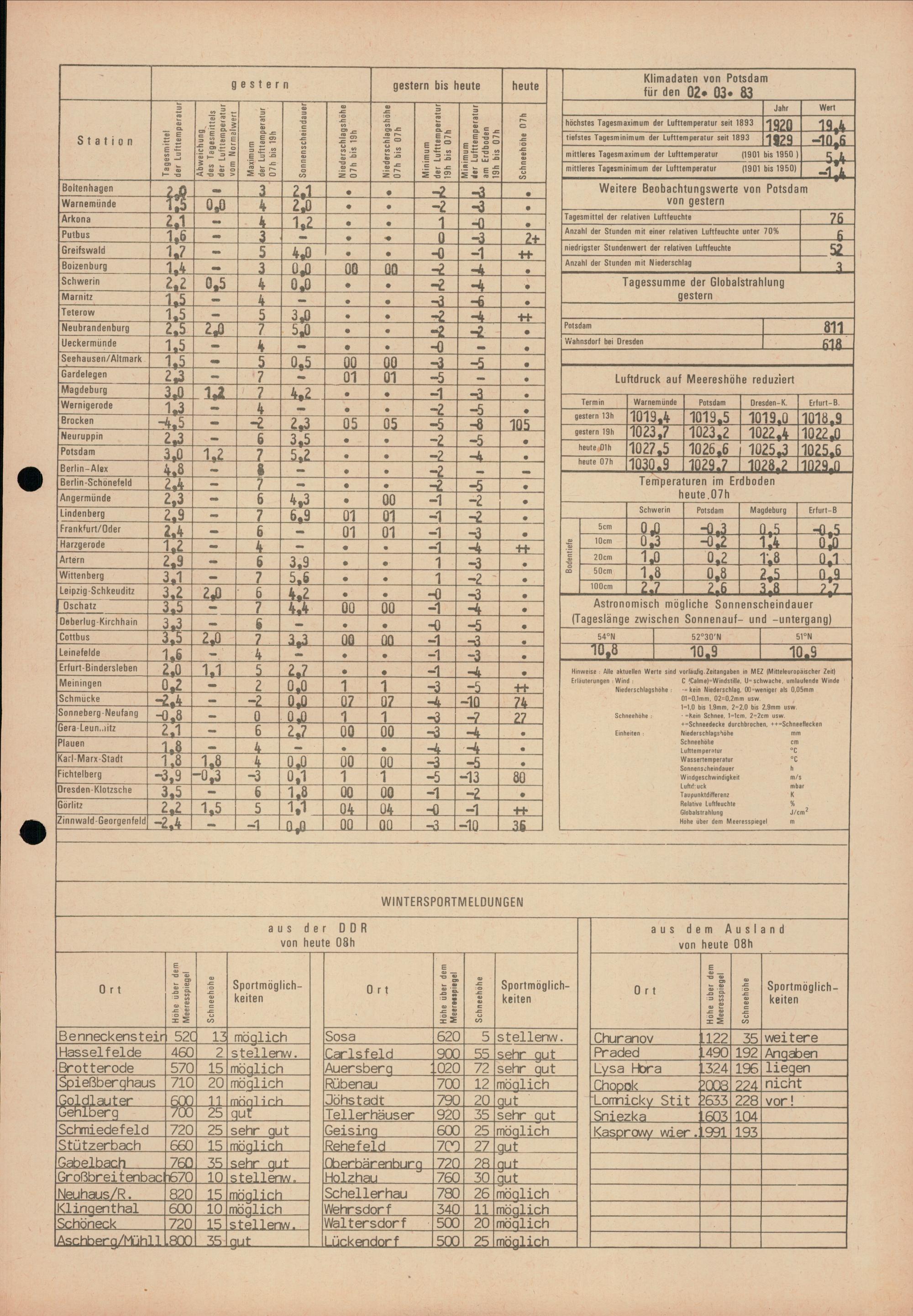 Täglicher Wetterbericht des Meteorologischen Dienstes der Deutschen Demokratischen...