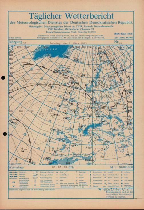 Täglicher Wetterbericht des Meteorologischen Dienstes der Deutschen Demokratischen...