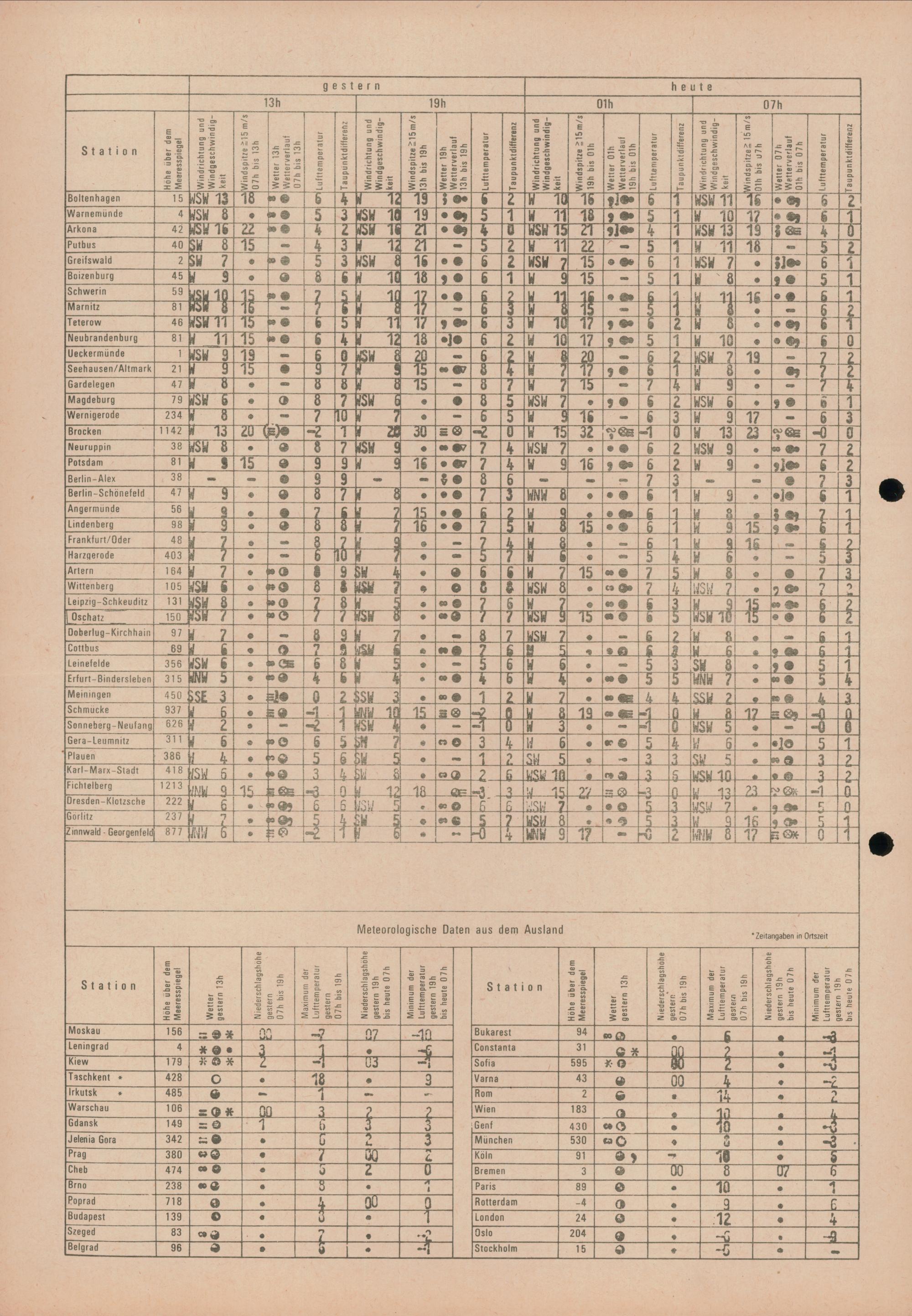 Täglicher Wetterbericht des Meteorologischen Dienstes der Deutschen Demokratischen...