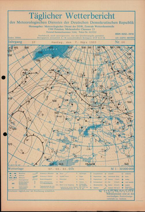 Täglicher Wetterbericht des Meteorologischen Dienstes der Deutschen Demokratischen...