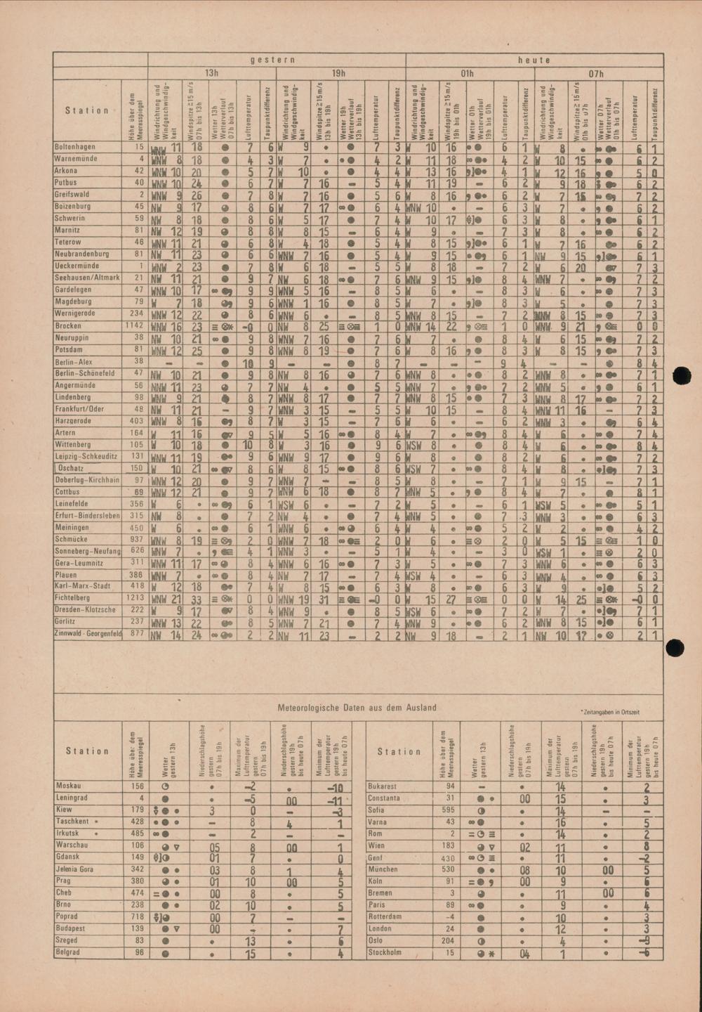 Täglicher Wetterbericht des Meteorologischen Dienstes der Deutschen Demokratischen...