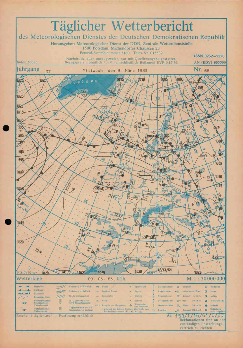 Täglicher Wetterbericht des Meteorologischen Dienstes der Deutschen Demokratischen...