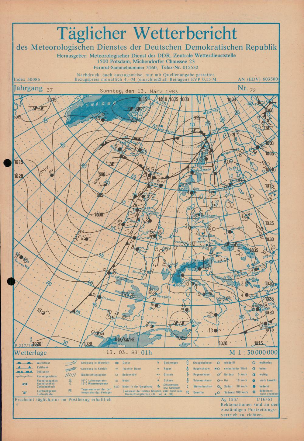 Täglicher Wetterbericht des Meteorologischen Dienstes der Deutschen Demokratischen...