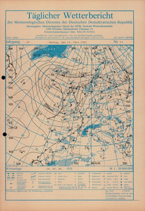 Täglicher Wetterbericht des Meteorologischen Dienstes der Deutschen Demokratischen...