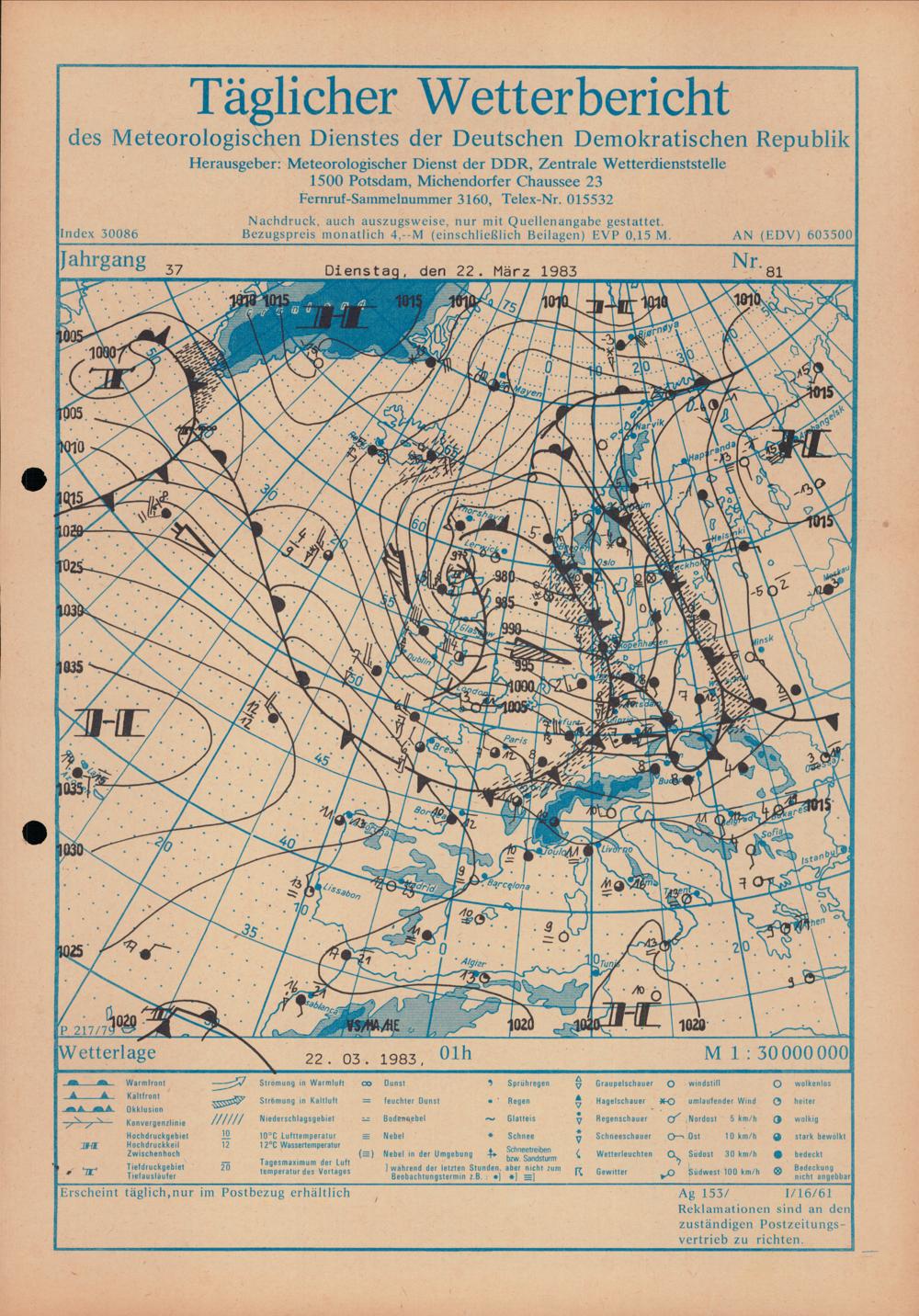 Täglicher Wetterbericht des Meteorologischen Dienstes der Deutschen Demokratischen...