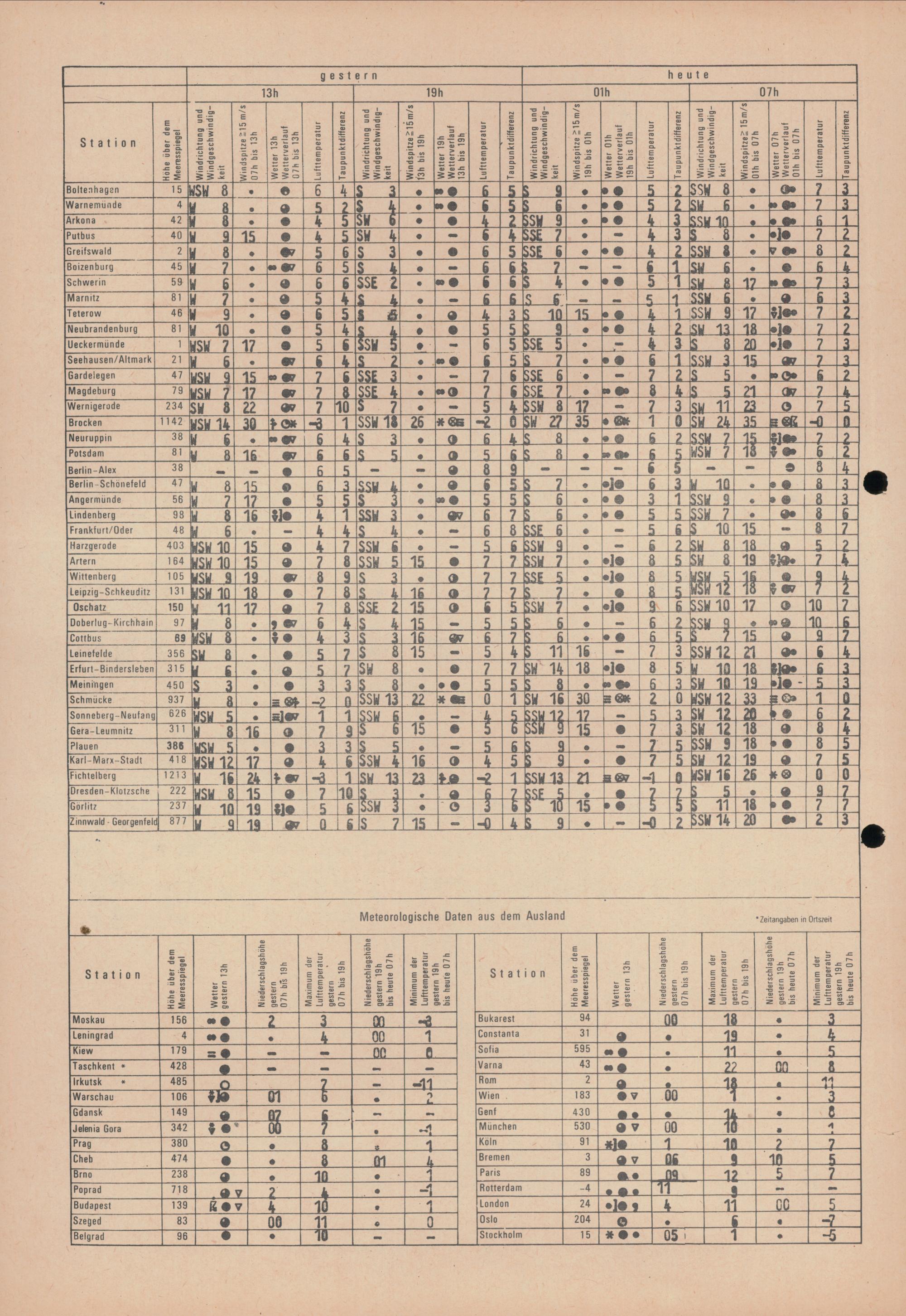 Täglicher Wetterbericht des Meteorologischen Dienstes der Deutschen Demokratischen...